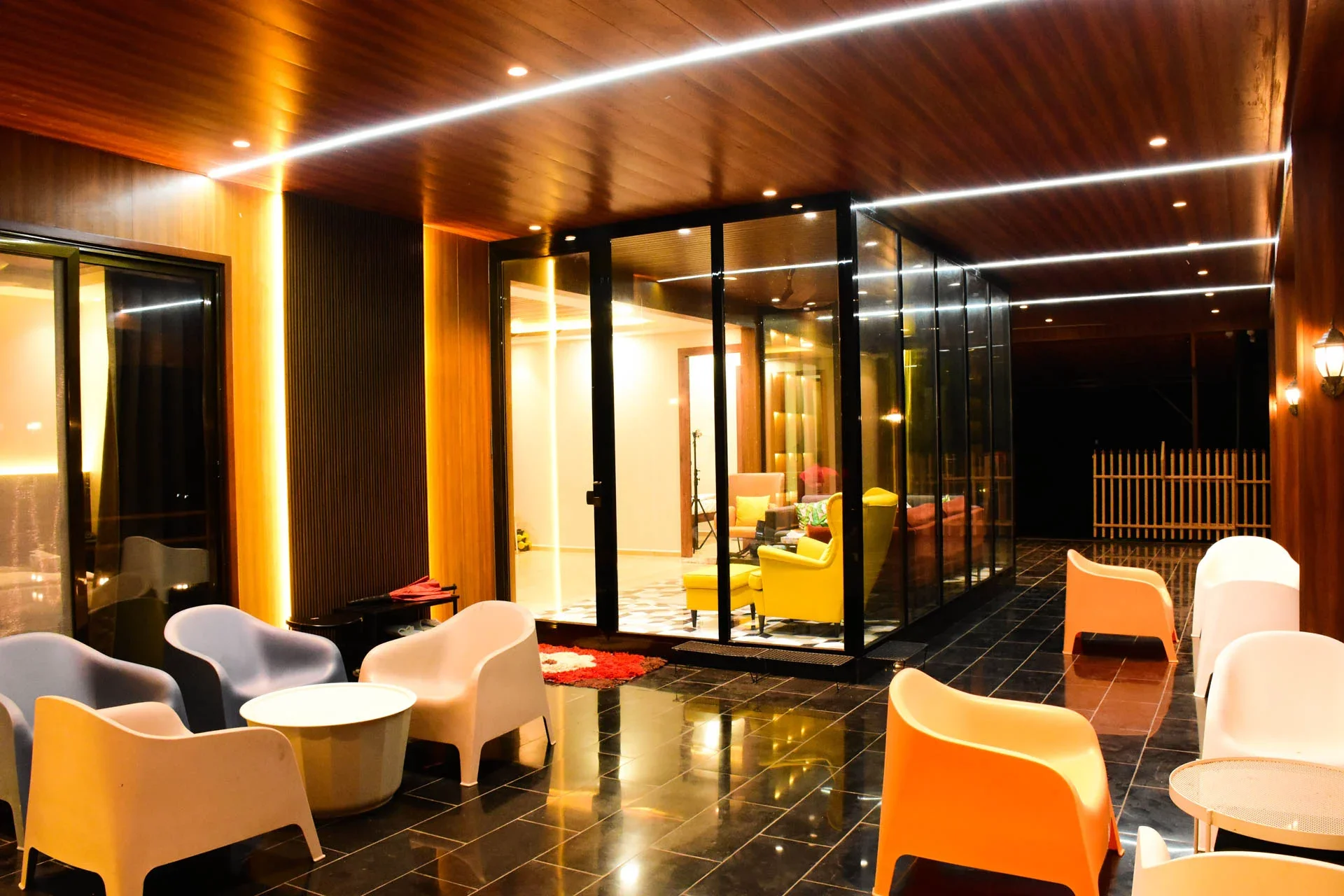 Additional facilities comprise a refrigerator, television, and complimentary toiletries. Crafted with elegance and warmth, the interiors radiate a cozy atmosphere complemented by a hint of luxury. let us focus on the true highlightsโ€”the expansive outdoor pool featuring a sunlit deck that beckons you to relax and forget your troubles, along with the vast lawn that is ideally suited for intimate events and enjoyable gatherings.