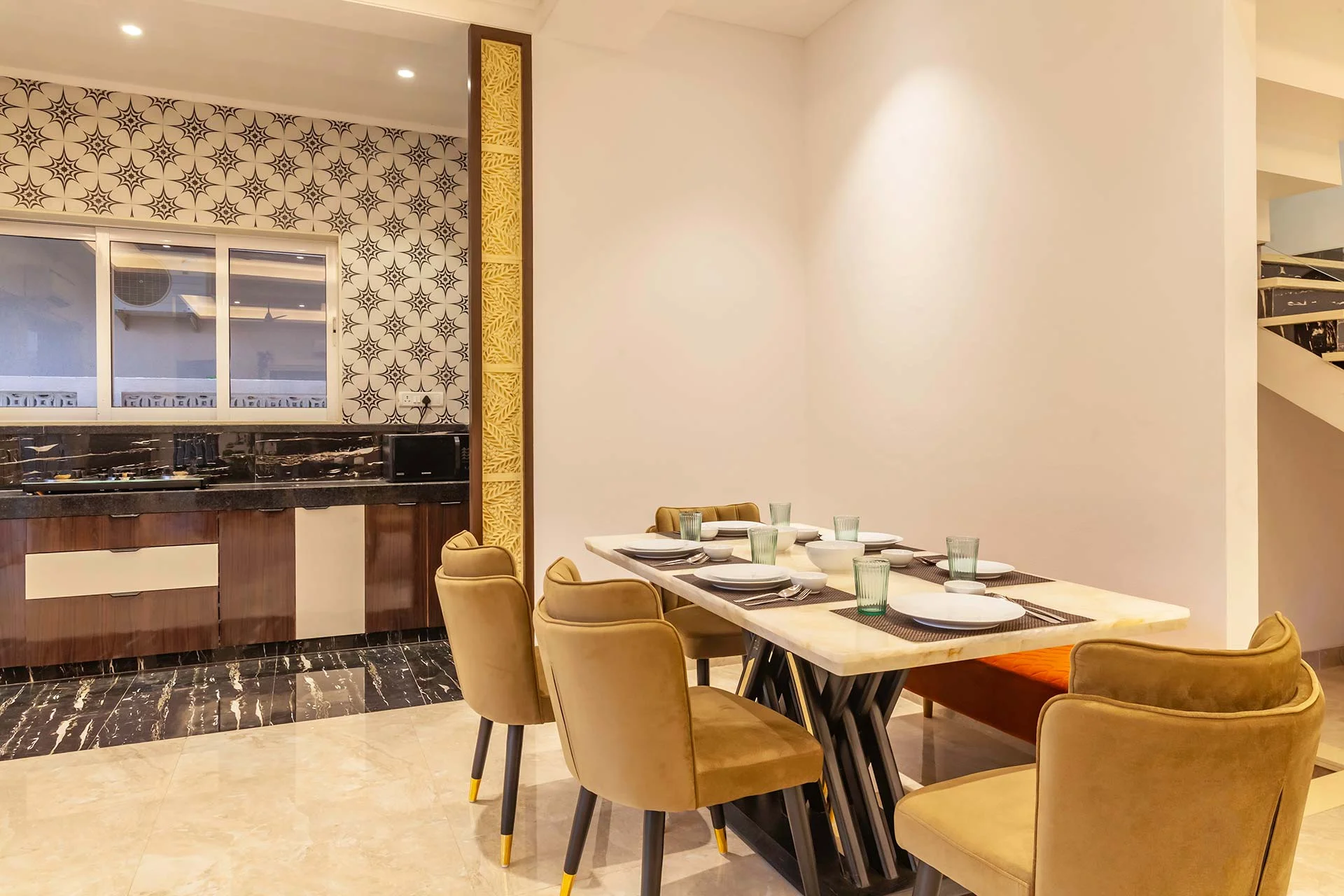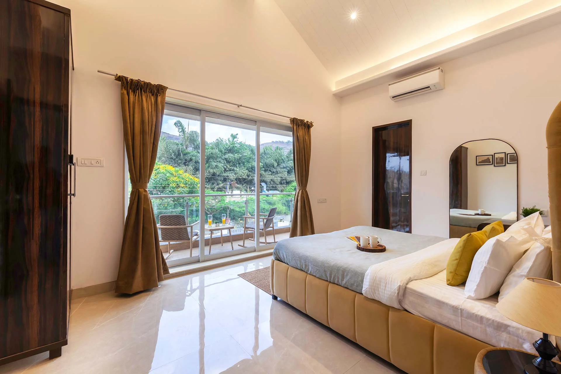 4 Bedroom Private Pool Villa In Lonavala VODMH292 is a tranquil vacation residence located in the serene town of Khandala. Adorned in calming shades of brown and white, the villa boasts luxurious furnishings, peaceful corners, and calming vistas.