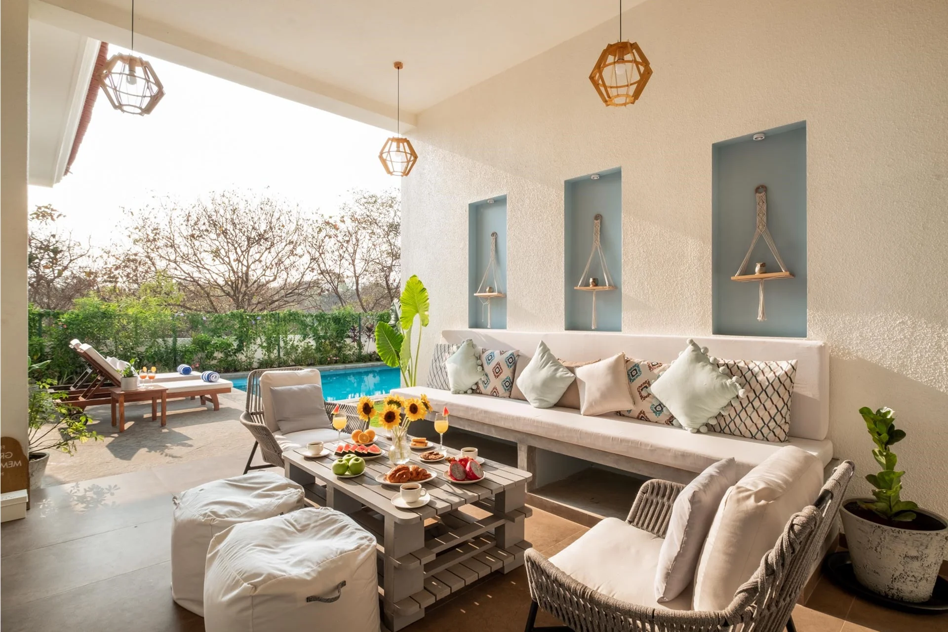 The interiors are both chic and classic, blending traditional design elements with a modern twist that is sure to captivate. From thoughtfully selected artwork to comfortable furnishings, every aspect of the home is chosen with meticulous attention. The villa provides ample space for groups or families. Situated 26 km from Manohar International Airport, the villa is just a 14-minute walk from Anjuna Beach. Nearby attractions include Chapora Fort at 2.4 km and Fort Aguada at 15 km.We recently spent a magical few days at luxury Villa in Udaipur booked through Villas On Demand and the entire experience was so amazing. Every detail of our stay was Carefully planned, making this trip an unforgettable one for all of us.
