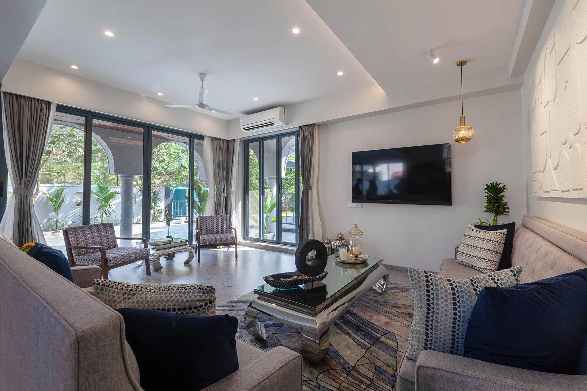 You find yourself in the home, gazing out at the horizon and letting your thoughts float away to the rhythm of the breeze flowing through the home. A witty piece of art – The Argument Corner is decisively set right by the entrance as you might have a difficult time choosing amongst the array of leisurely amenities starting right from the doorstep.
