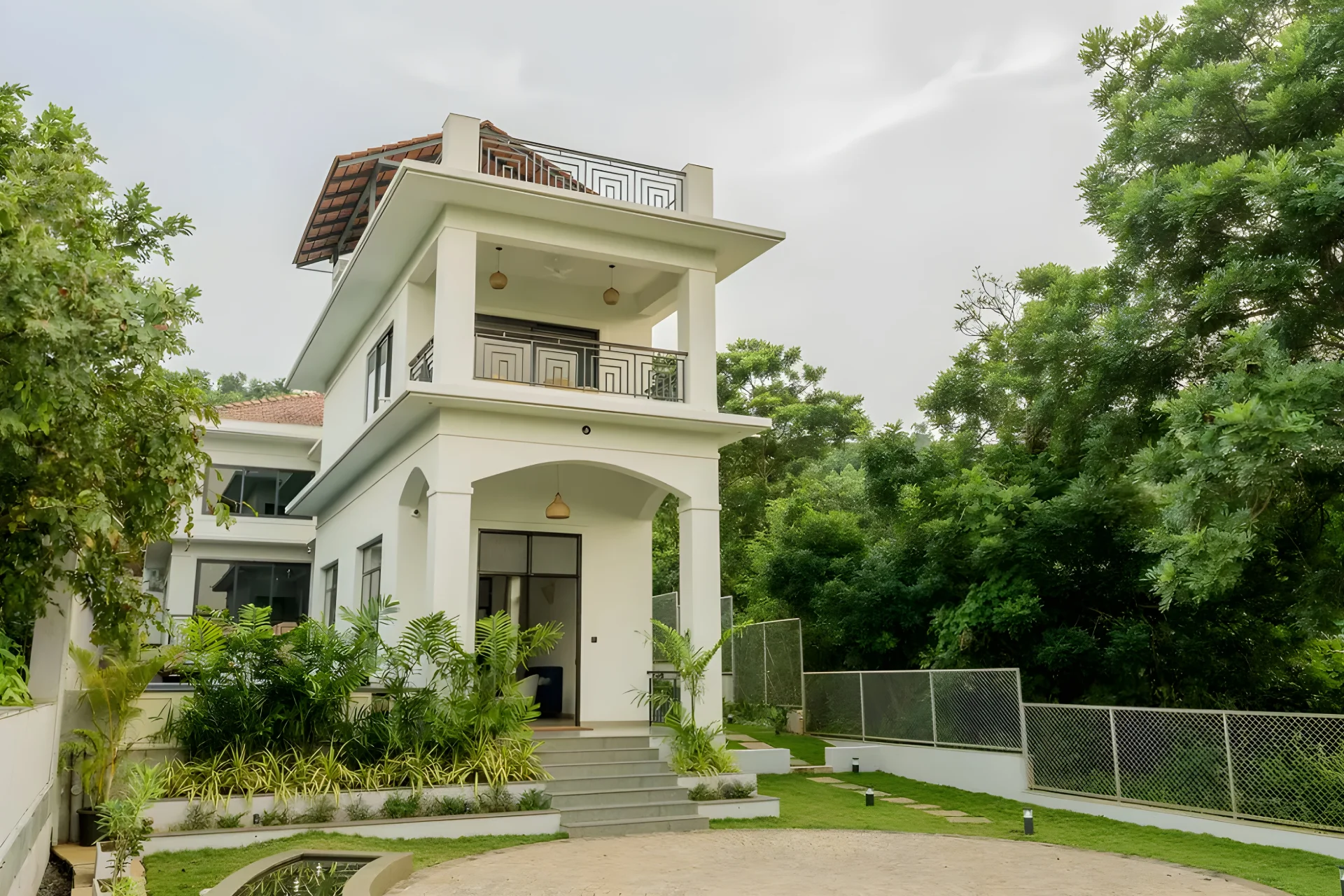 VODGA135 Villa is a secluded private villa located in Calangute, nestled among lush hills and dense greenery, providing a unique sense of privacy while remaining conveniently close to Candolim and Calangute. The villa welcomes you through a spacious garden entrance into bright and airy interiors that are bathed in natural light. Outside, the surrounding greenery envelops the villa, establishing a serene and sheltered atmosphere that feels a world apart from the hustle and bustle.