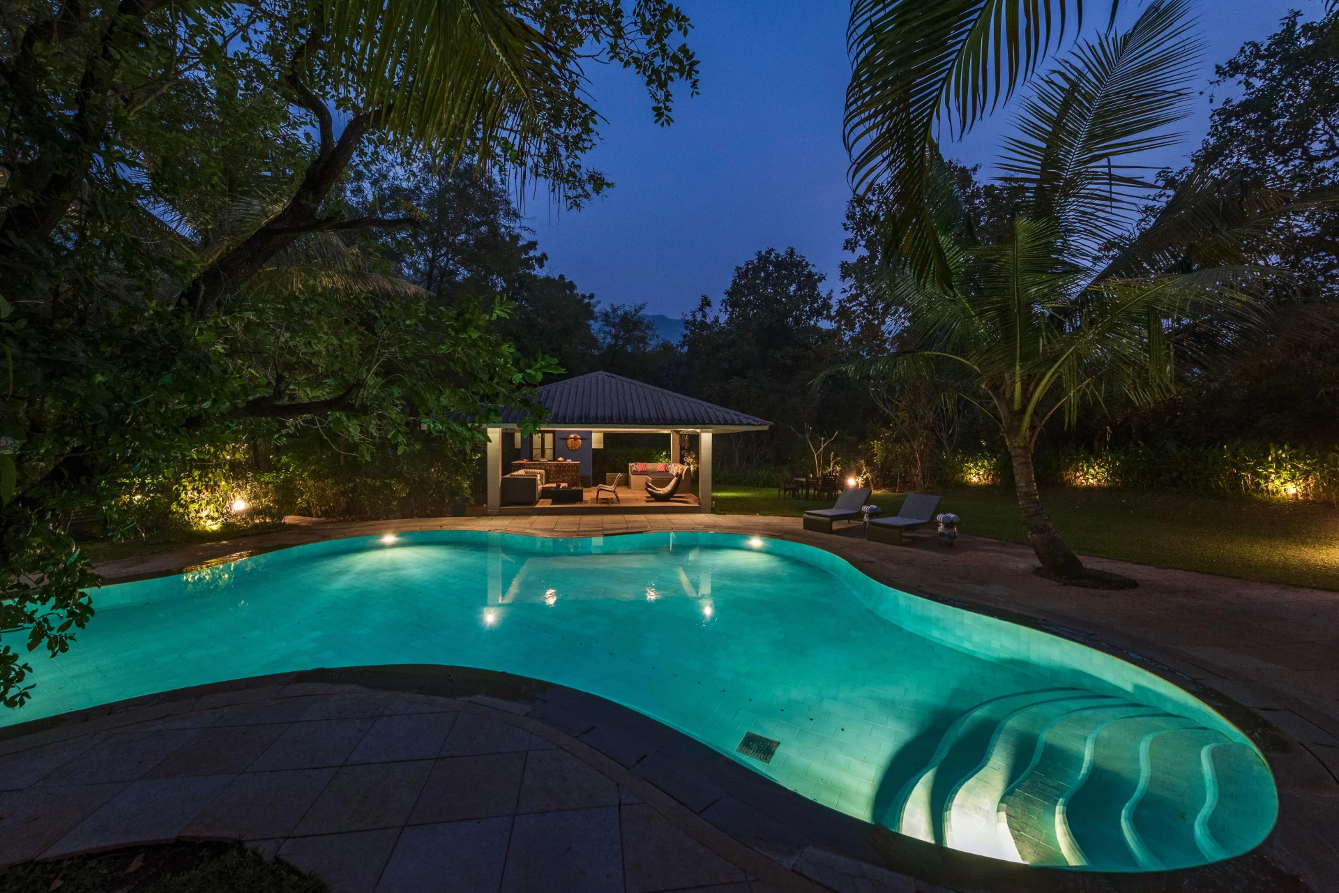 4 Bedroom Villa With Gazebo Situated within the embrace of nature, this location serves as a concealed treasure for individuals in search of peace and allure. The distinctive pear-shaped swimming pool, sheltered by a grand tree, beckons you to enjoy the sunlight or to refresh yourself with a delightful dip.
