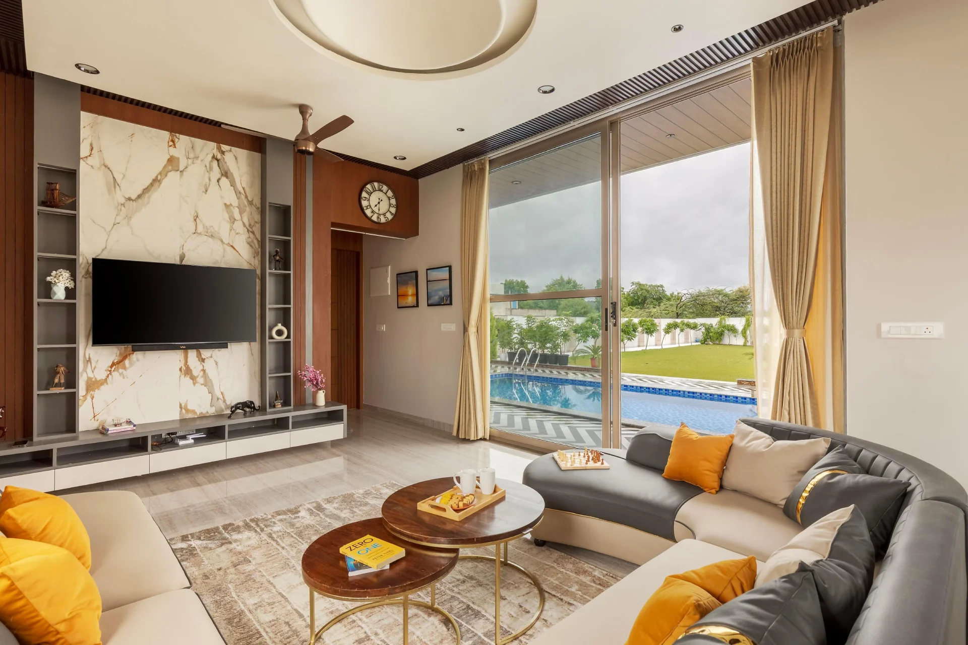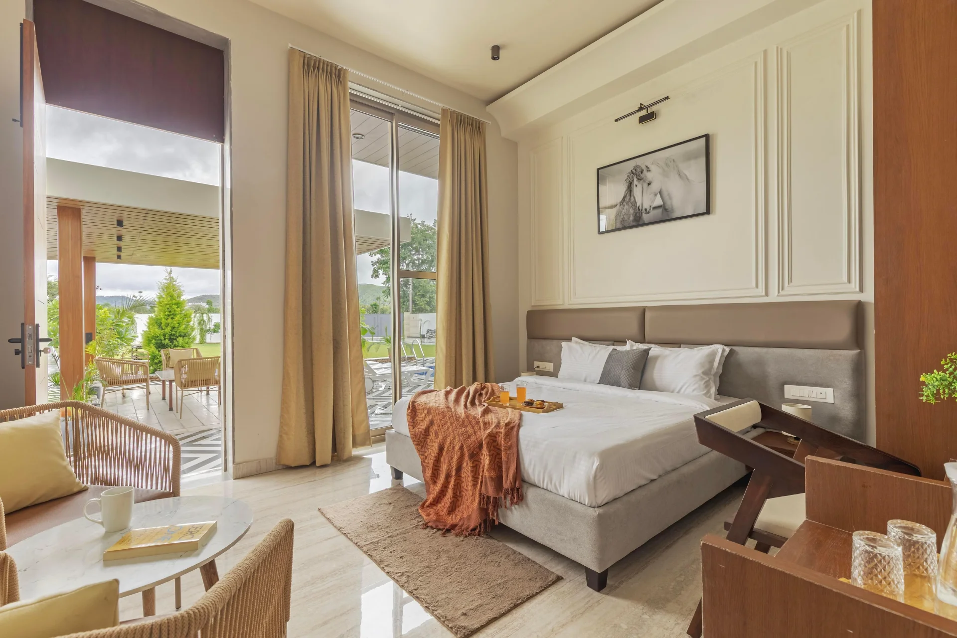 Experience a meticulously crafted 4-bedroom luxury villa, VODRJ249, situated in Udaipur, ideal for families or groups in search of a serene getaway near both nature and urban attractions. The residence features expansive living spaces, a generous lawn, and a private swimming pool, merging comfort with practicality. Each bedroom is thoughtfully designed to ensure comfort and privacy, equipped with attached bathrooms and large windows that provide sweeping views of the Aravalli hills. VODRJ249 Villa offers complimentary WiFi and mountain vistas, serving as a delightful accommodation in Udaipur.