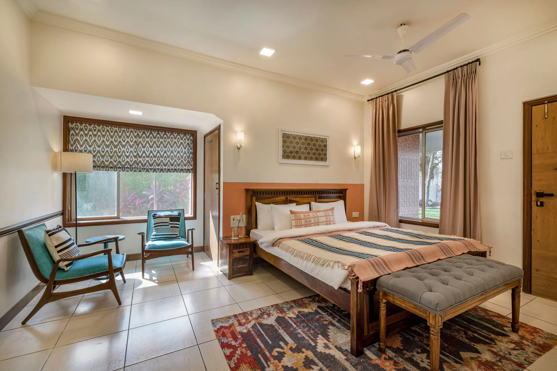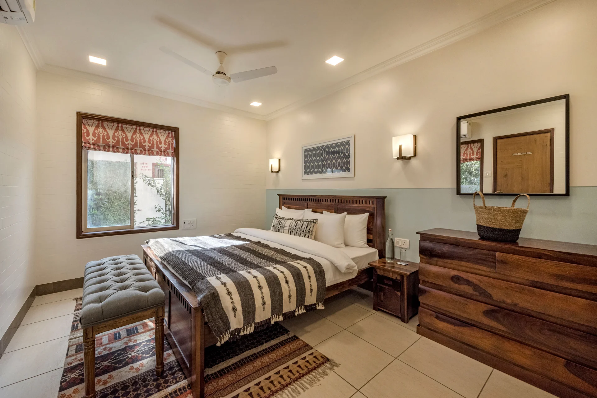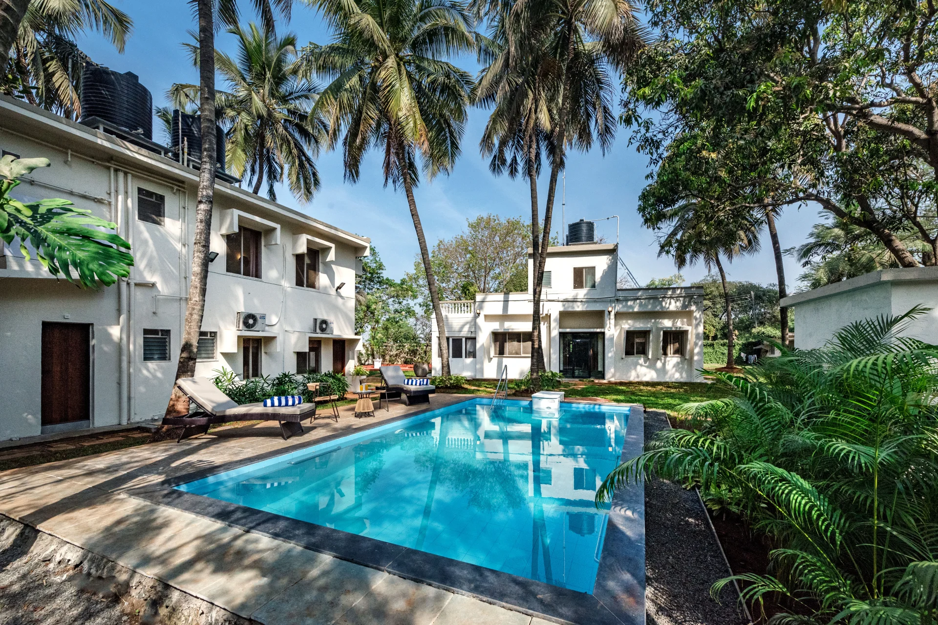 4 Bedroom Villa With Pool A charming villa perfectly situated close to Mandwa Jetty in Alibaug. The bedrooms offer views of the pool, surrounded by tree-lined gardens, an inviting azure pool. all awaiting your discovery at this villa. Visit the nearby Mandwa, Saral, and Awas Beaches to enjoy the excitement.