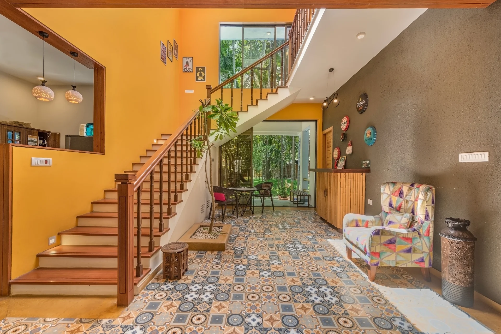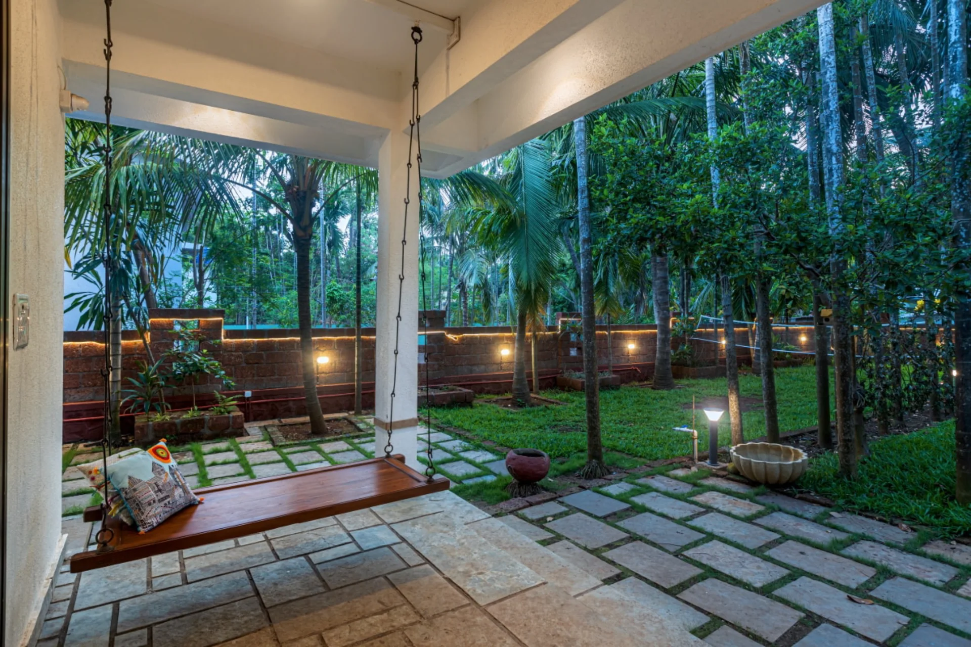 4 Bedroom Villa With Poolside Gazebo A picturesque villa featuring a pool, surrounded by swaying palm trees and bougainvillea blooms, located merely 5 minutes from Mandwa Jetty in Alibaug. Take a refreshing dip, settle on the swing by the pool, bond over a meal in the poolside gazebo, and play indoor games, all while tuning into Alibaug vibes.