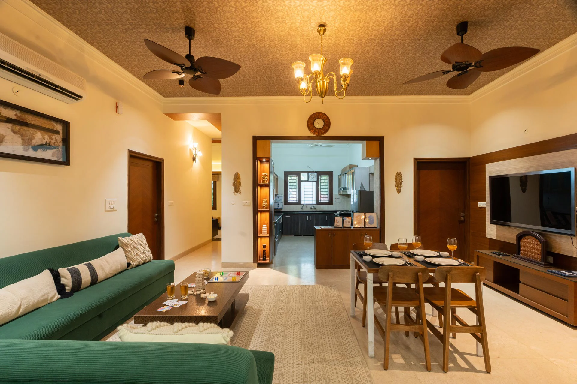 4 BHK Lawn Villa In Jaipur Situated on the more tranquil side of Jaipur, this villa is crafted for individuals who favor their retreats to possess a touch more personality. The lawn with and shaded spots, offers a calm space to lounge or catch up over a drink.