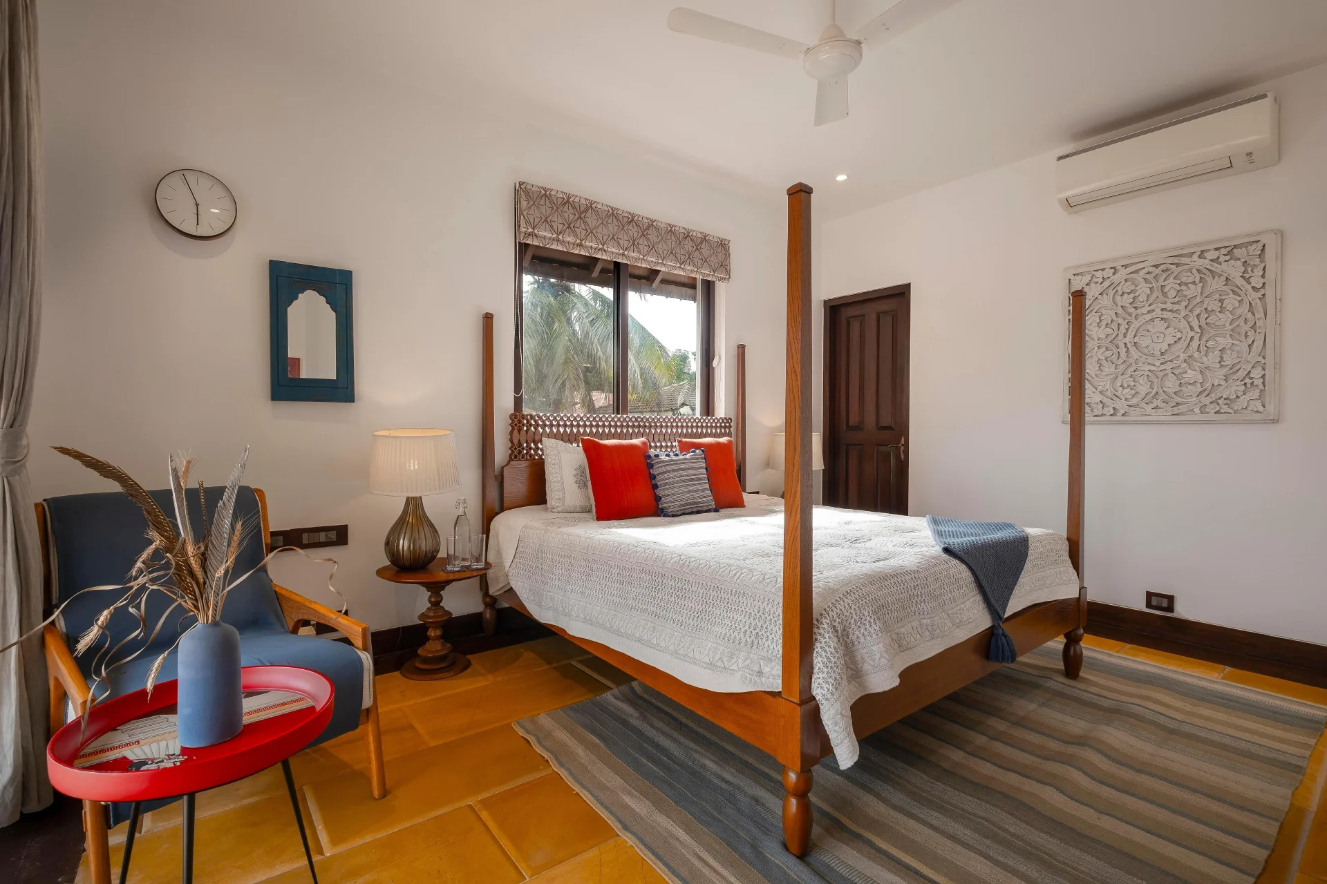 Nestled in the tranquil surroundings of Assagao, this four-bedroom pool villa serves as a peaceful haven for families and friends to gather. Featuring artisanal tiles, natural textures, and a harmonious indoor-outdoor flow, every aspect of the residence exudes warmth and character. Ideal for significant celebrations or relaxed vacations, the villa encourages you to enjoy the private pool, relax in serene nooks designed for quiet reflection, or explore the vibrant area of Goa.