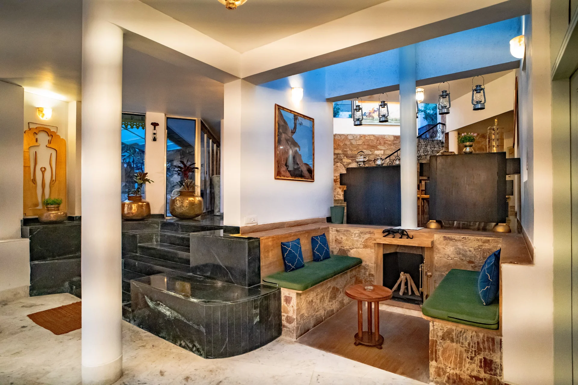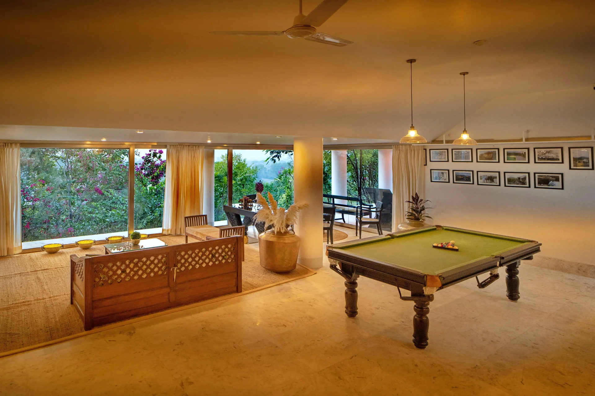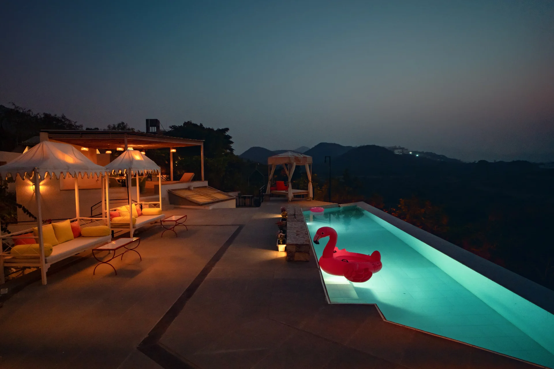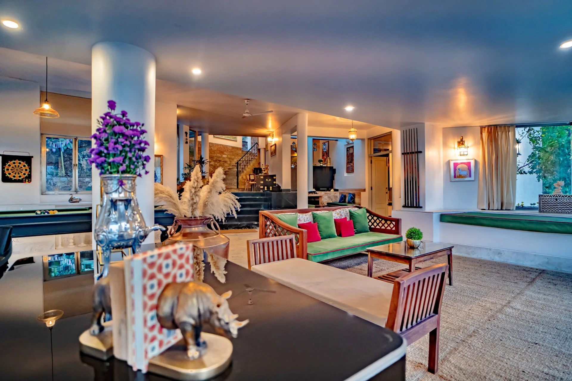VODRJ57 Villa in Udaipur is a luxurious retreat offered by Horizon Hospitalities, located in a serene setting that provides stunning views of the Aravalli Hills. This villa is ideal for families, couples, or groups seeking a tranquil and private getaway. VODRJ57 Villa offers you 4 spacious rooms, a large living room with fireplace, a cozy sitting area with billiard, an inside dining room and an outside one, an outdoor infinity swimming pool. This Property offers a private pool and free private parking. Away from Noisy city on top of VODRJ57 Villa features accommodation in Udaipur with free WIFI and garden views.