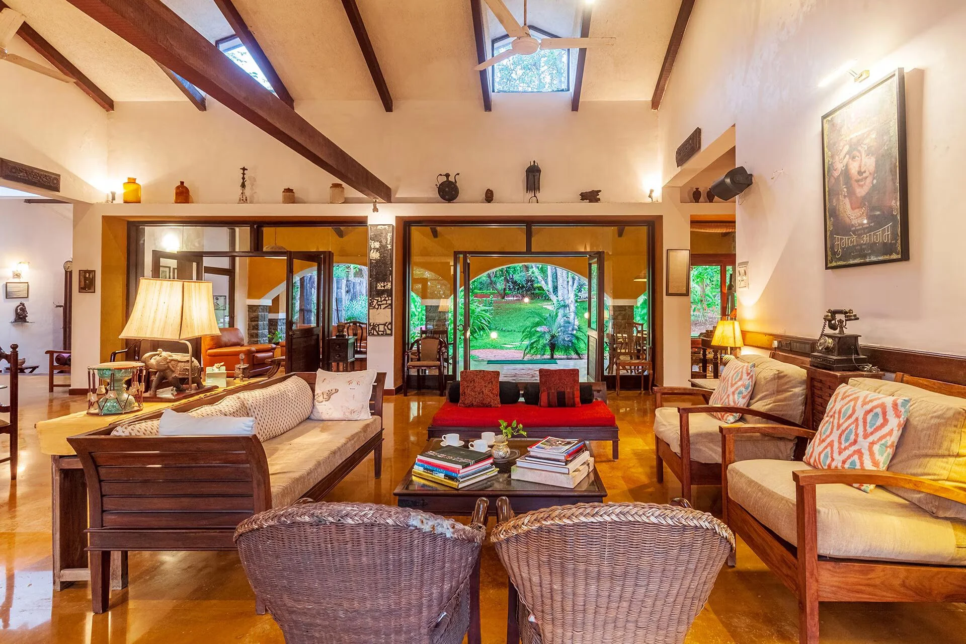 4 BHK Villa With Gazebo Upon your arrival at this stunning residence in Alibaug, you will enter a unique realm of nature at its finest. Spanning an impressive 2.25 acres, VODMH191 Villa is a delightful home nestled among three hundred verdant trees.