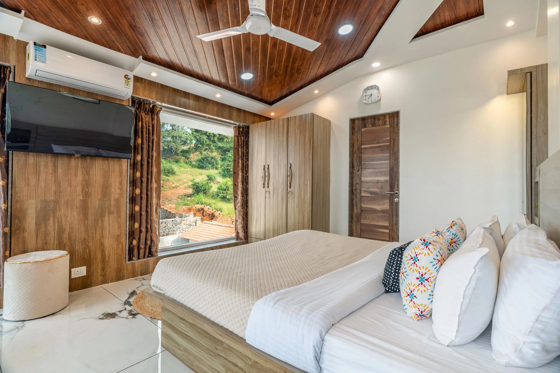 Located in Lonavala, VODMH297 Villa offers spacious accommodation with four bedrooms and four bathrooms. The property features a living room and a fully equipped kitchen. Guests can enjoy a rooftop swimming pool, a green garden, a terrace and a bar. Free WiFi is available throughout the villa. Additional features include an outdoor fireplace, an outdoor seating area and karaoke facilities. The villa is equipped with air conditioning, a balcony offering garden views and a fully equipped kitchen. Other amenities include a washing machine, bidet and free toiletries. Surrounded by lush greenery and stunning mountain views, the beauty of this villa is matched only by its luxurious amenities.