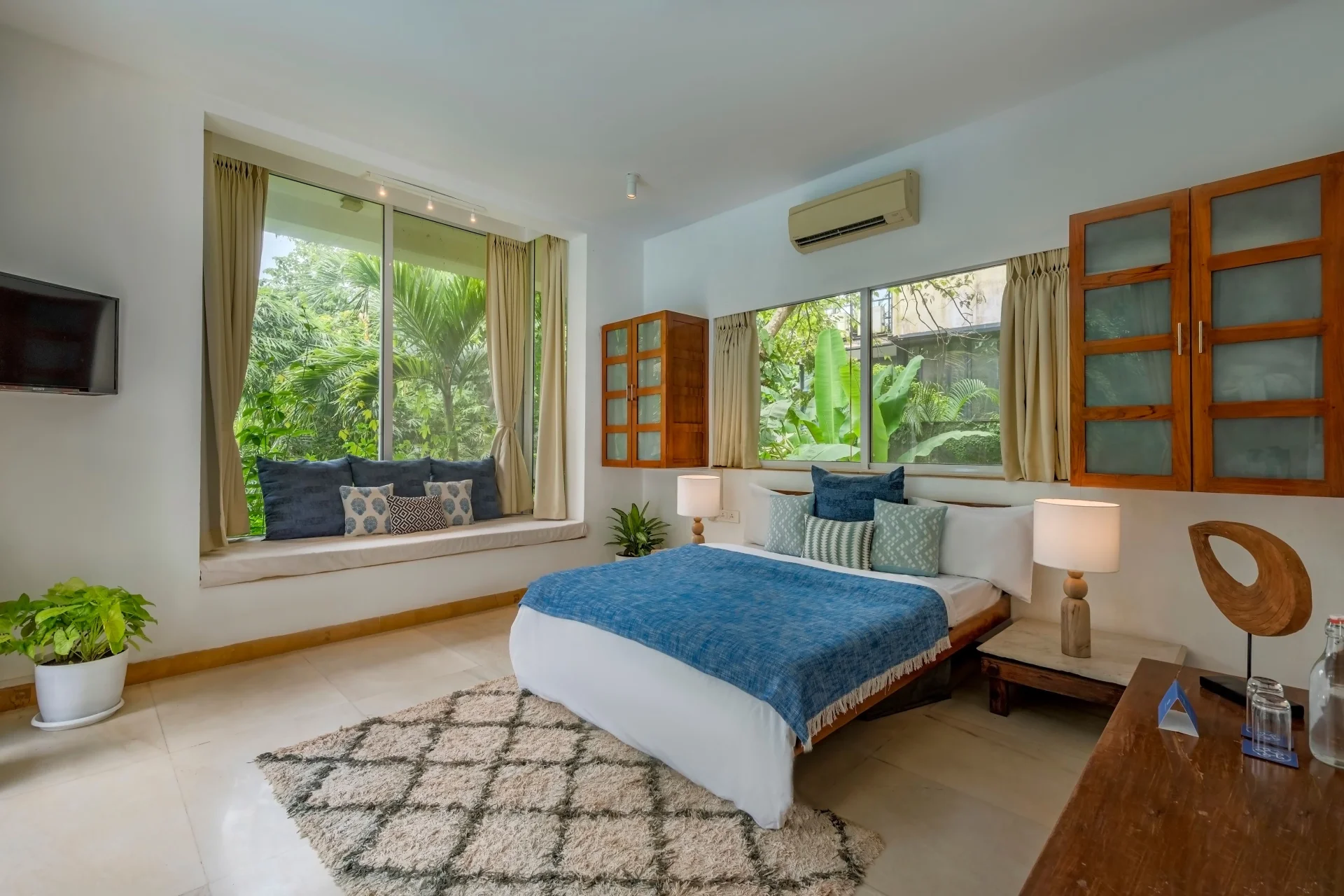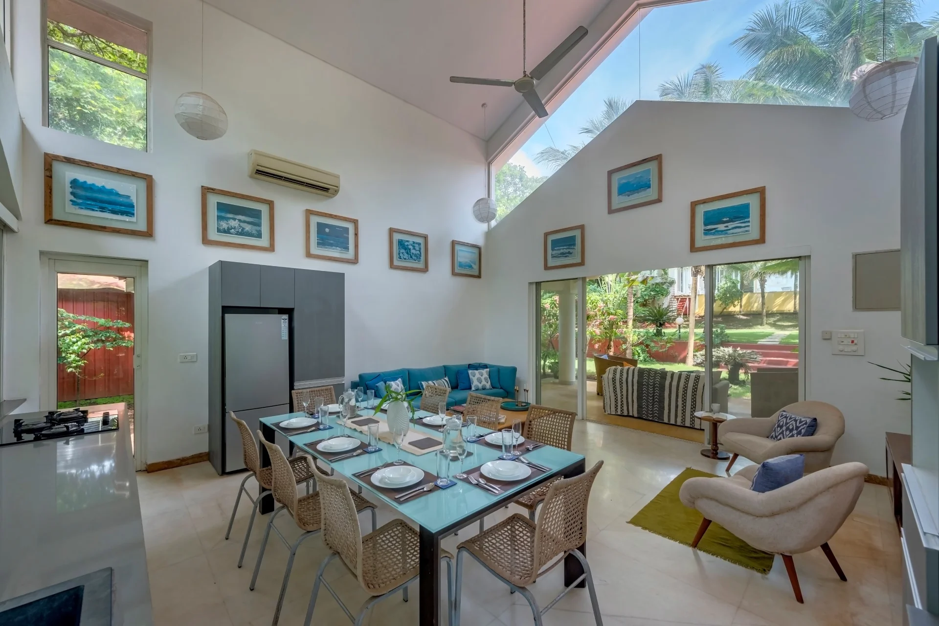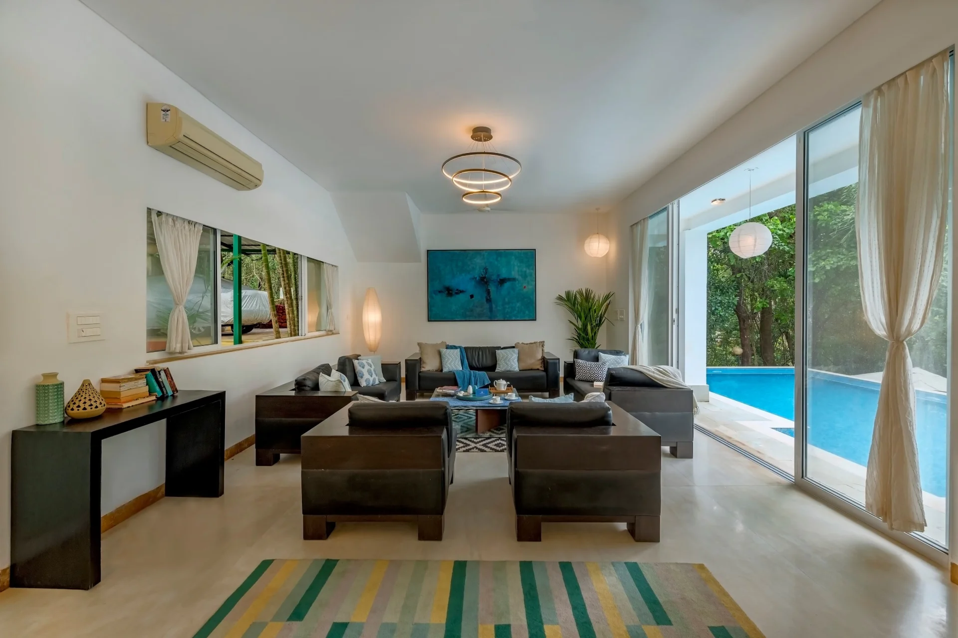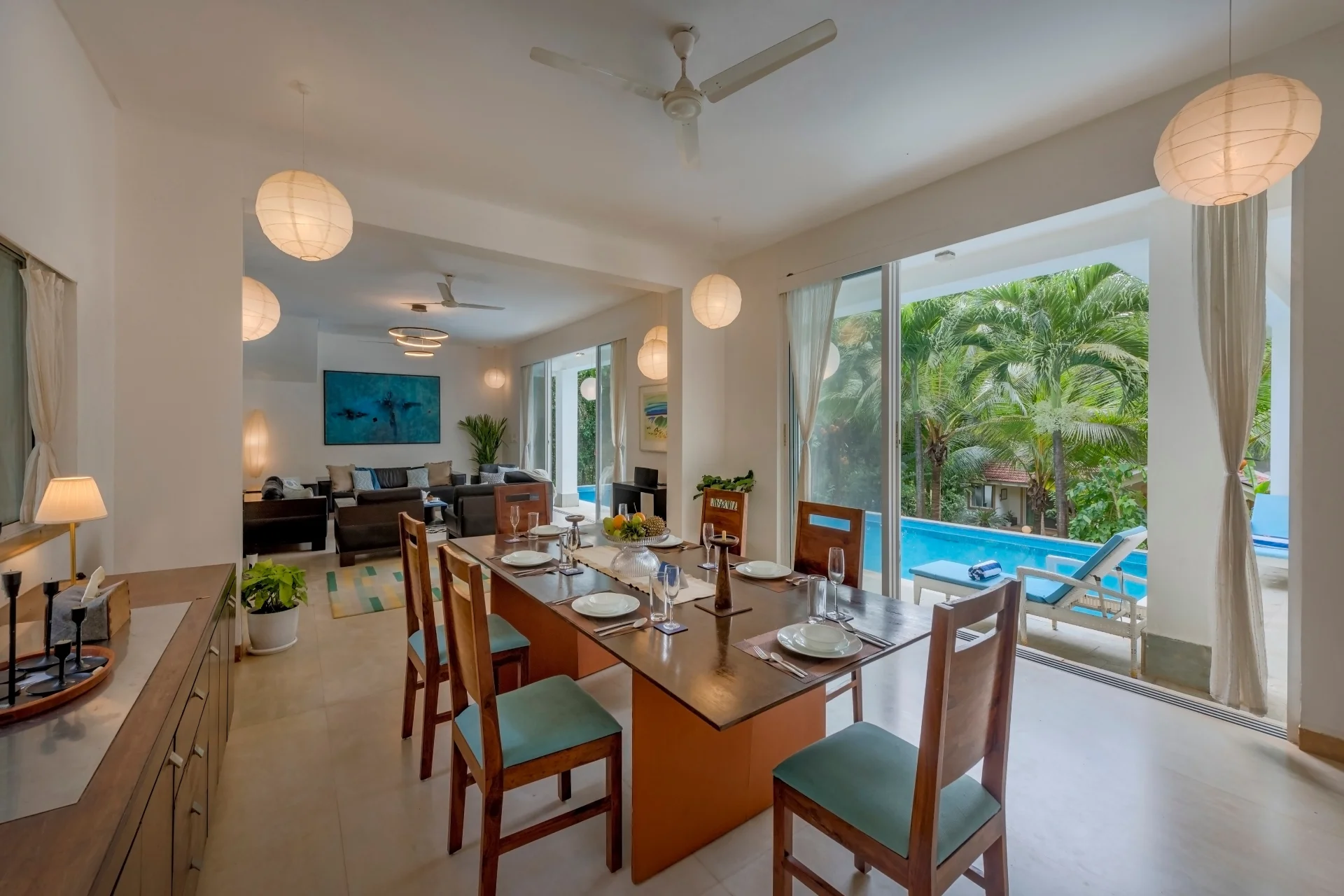 Step into Assagao’s 4-bedroom hidden treasure Imagine entering a tranquil luxury pool villa located in the heart of North Goa Assagao, where nature envelops you in a gentle embrace. Tucked away in the woods, this villa is encircled by towering trees that share their secrets with the breeze. The residence harmoniously integrates with the forested surroundings, featuring expansive windows and open areas that beckon you to the outdoors.
