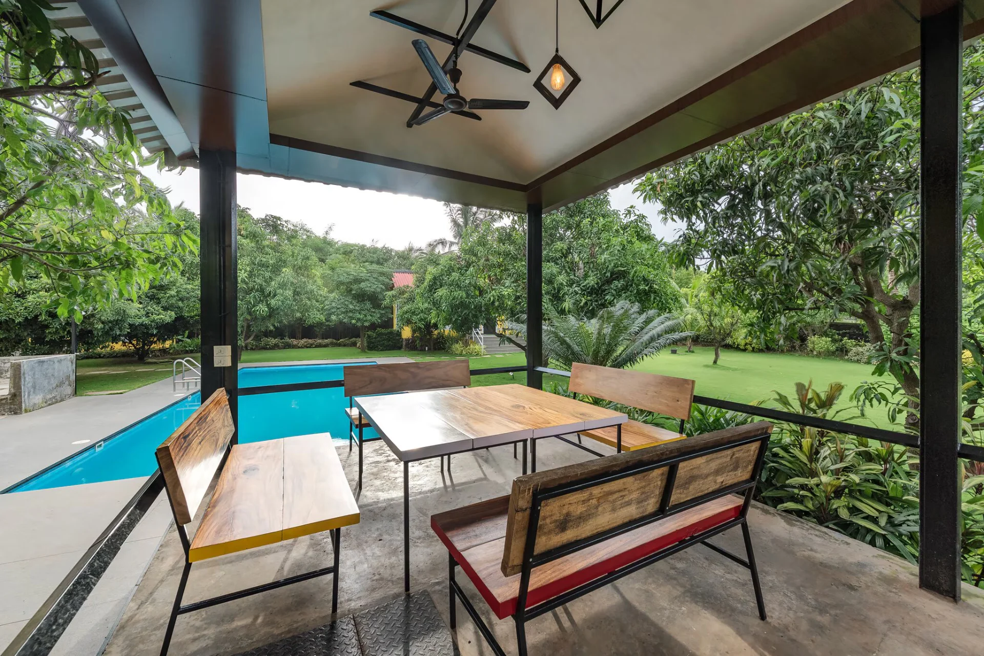 4 BHK Villa With Lawn In Karjat VODMH127 Villa is a pool villa in Karjat that welcomes pets. This villa is crafted for families seeking to unwind, reconnect, and forge enduring memories. Whether it’s a fun picnic on the lawn, a cozy evening under the gazebo, or game nights with your loved ones, this villa offers the perfect setting for every moment.