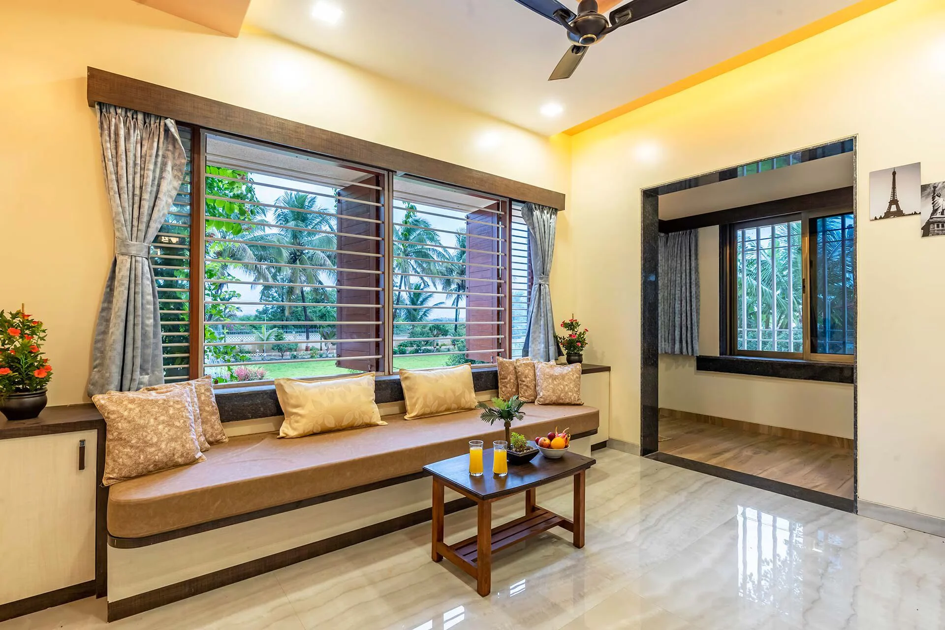 4 BHK Villa With Lawn Endless vistas of the grape vineyards, warm tropical weather, and a lush landscape beckon you to this tranquil retreat, located merely a brief ferry ride from the vibrant city of Mumbai. This tranquil haven is indeed a must-visit for creating everlasting memories with your loved ones.