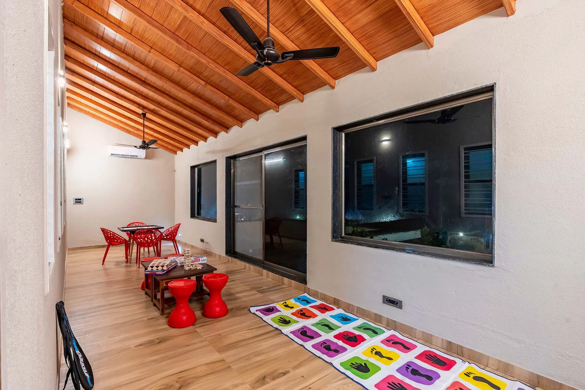 VODMH251 Villa in Nashik presents a spacious accommodation featuring four bedrooms and six bathrooms. The property comprises a living room, dining area, and a fully equipped kitchen. Guests benefit from complimentary on-site private parking, air-conditioning, and a washing machine. Additional features include a balcony, dining table, and a seating area. Visitors can relish a garden, terrace, and an outdoor swimming pool. Free WiFi is accessible throughout the villa, ensuring seamless connectivity.