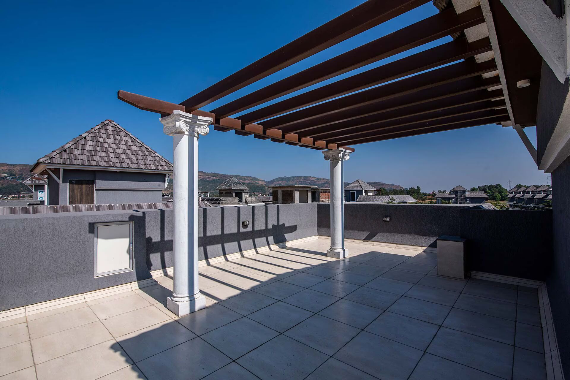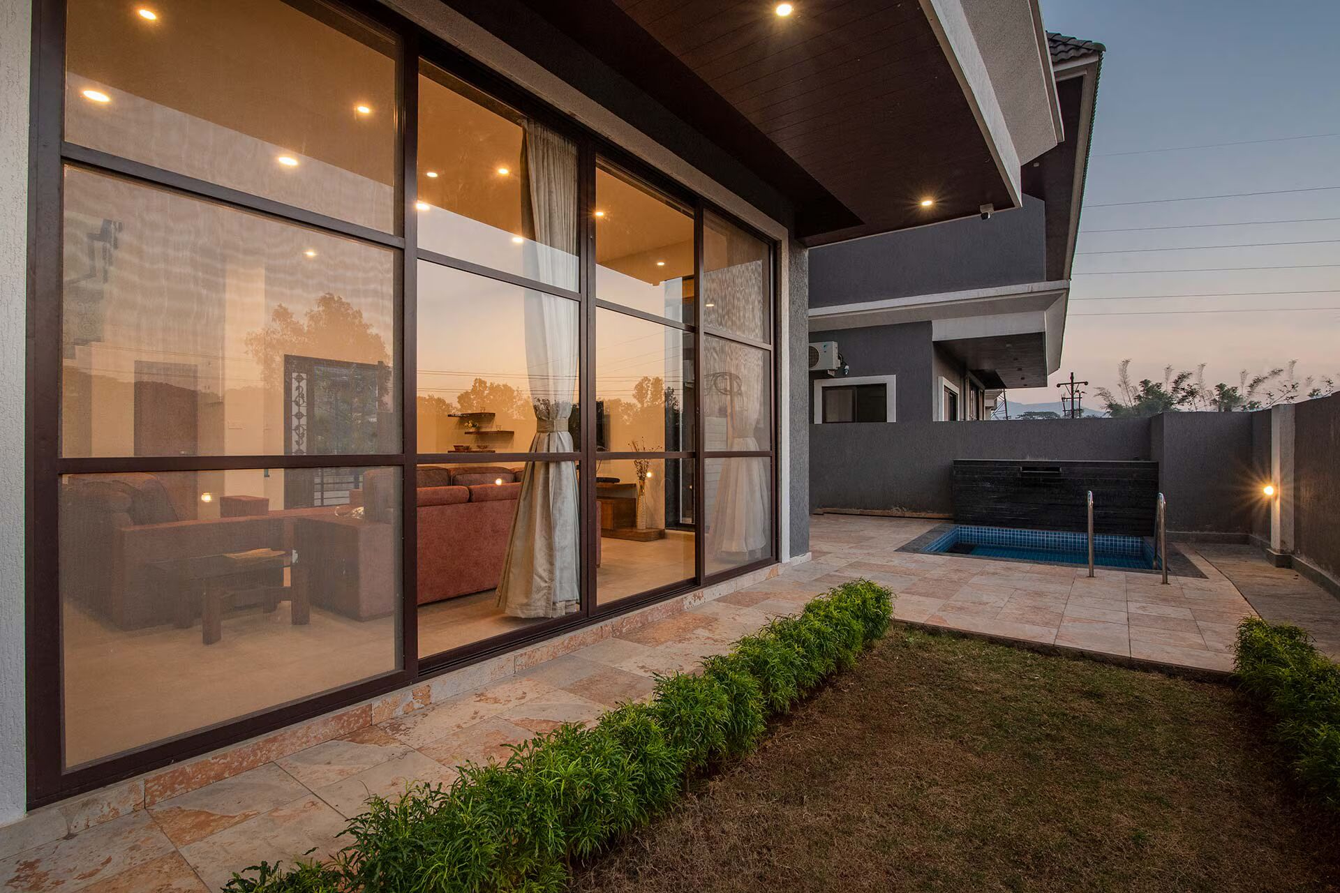 VODMH31 Villa with Plunge Pool & Kids Zone, situated in Lonavala, provides air conditioned lodgings that feature a private pool, scenic mountain views, and a balcony. Guests are granted access to a terrace, free private parking, and complimentary WiFi. The villa boasts an impressive exterior and includes a compact private lawn, perfect for outdoor pursuits, an in house library with a wide array of books catering to all literary tastes, a games room, a terrace equipped with a bar counter, and a private swimming pool.
