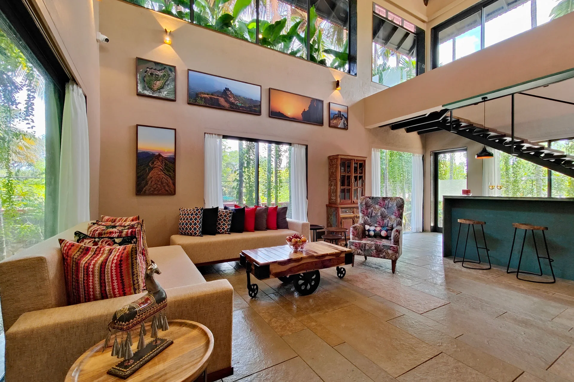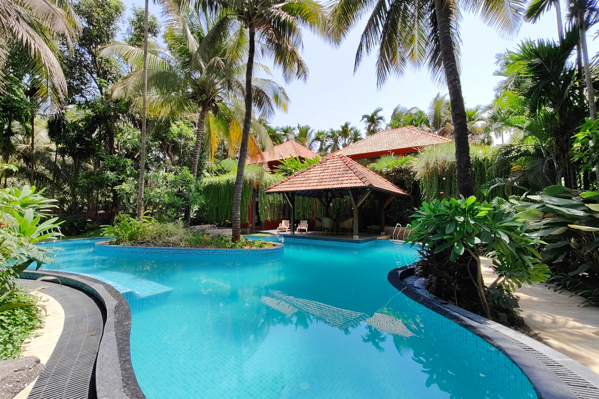 4 BHK Villa With Poolside Gazebo Envision a lively holiday in Alibaug at this villa with a tile roof, located close to Thal Beach. spend extended hours floating in the Balinese-inspired pool, sample expertly crafted cocktails at the indoor bar, photograph the gently swaying palm trees, enjoy a variety of delicacies, all while being near the sparkling beaches of Alibaug.