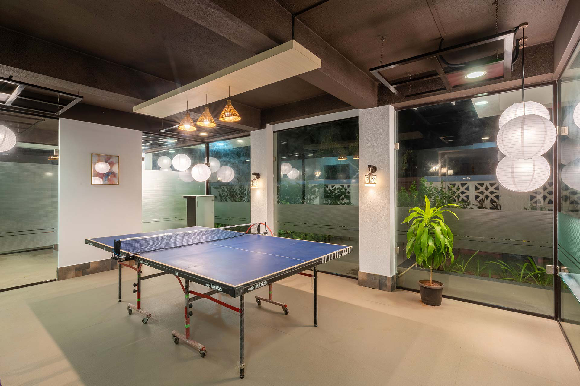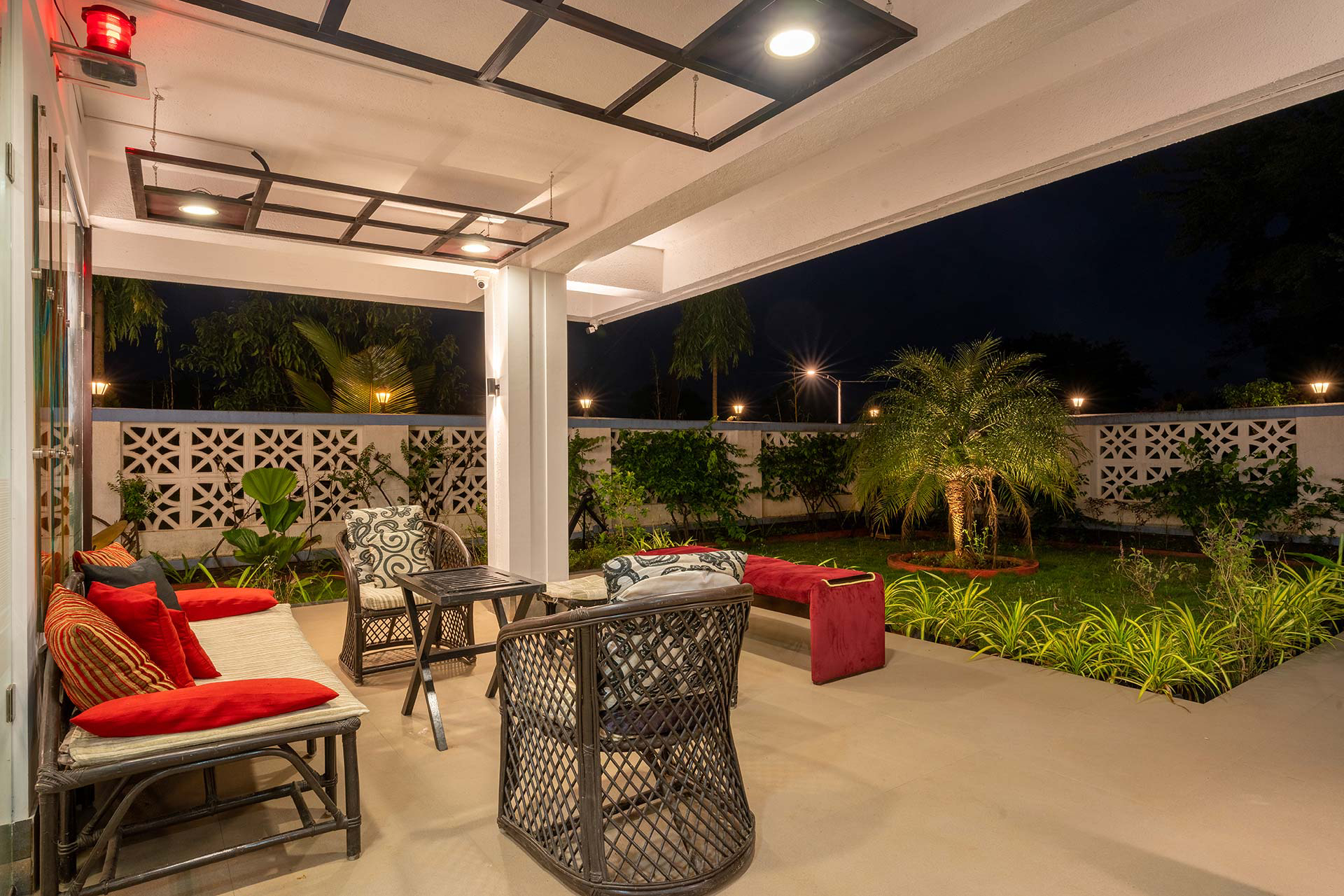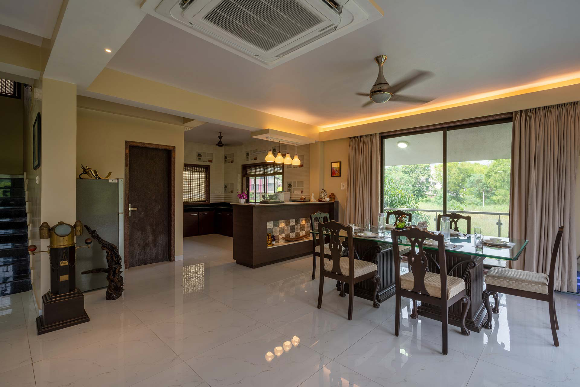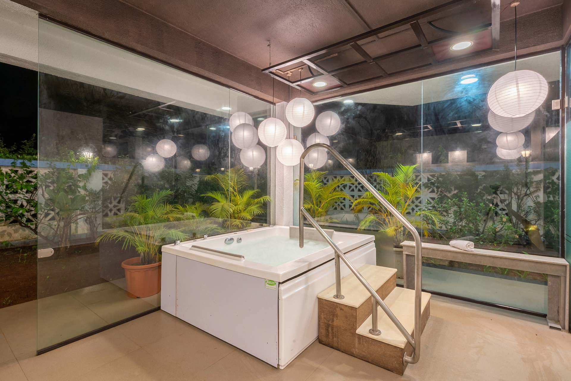 This villa, situated amidst 270 degrees of unobstructed views of the Indrayani River and a stunning waterfall, serves as an ideal retreat for those desiring both tranquility and opulence. The glass enclosed jacuzzi provides a unique opportunity to connect with the natural environment while enveloped in ultimate comfort. A remarkable aspect of this villa is the private viewing gallery, an exclusive area designed for you to appreciate the magnificent beauty of the surrounding landscape.