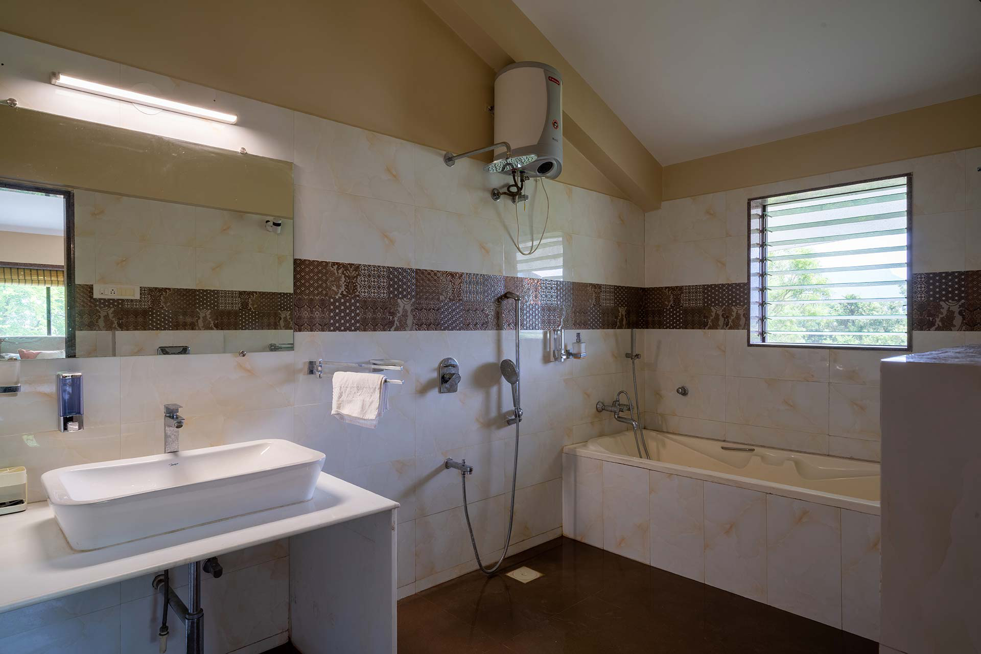 4 BHK Villa With Riverview This exquisite treasure, nestled in a tranquil setting, provides an unmatched escape within the splendor of nature. Stepping inside, you’ll immediately appreciate the seamless fusion of contemporary furnishings with an array of carefully curated marine themed decor, including charming sea anchors and propellers, reflecting the owner’s marine lineage.