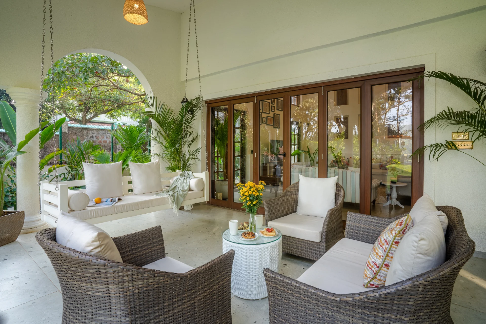 4 BHK Villa With Terrace In Goa Experience contemporary luxury in Goa. Tucked away among charming residences and verdant landscapes in Siolim, Villa VODGA151 presents a striking white facade. Echoing the essence of classic Goan architecture, this villa serves as an opulent tropical retreat.