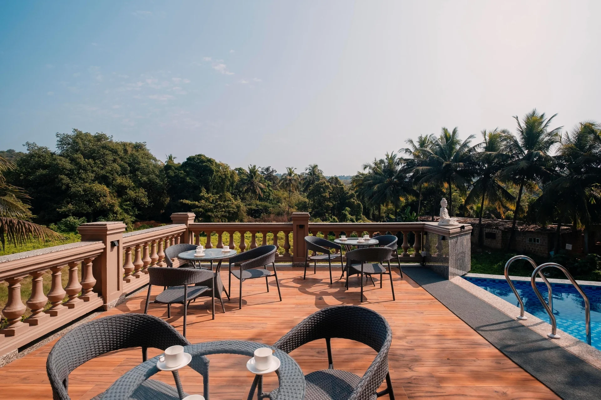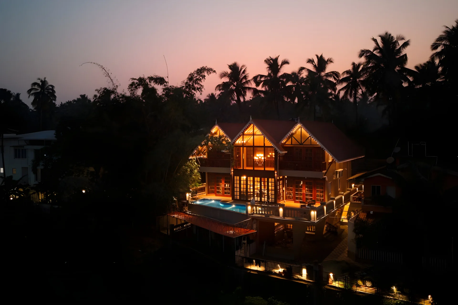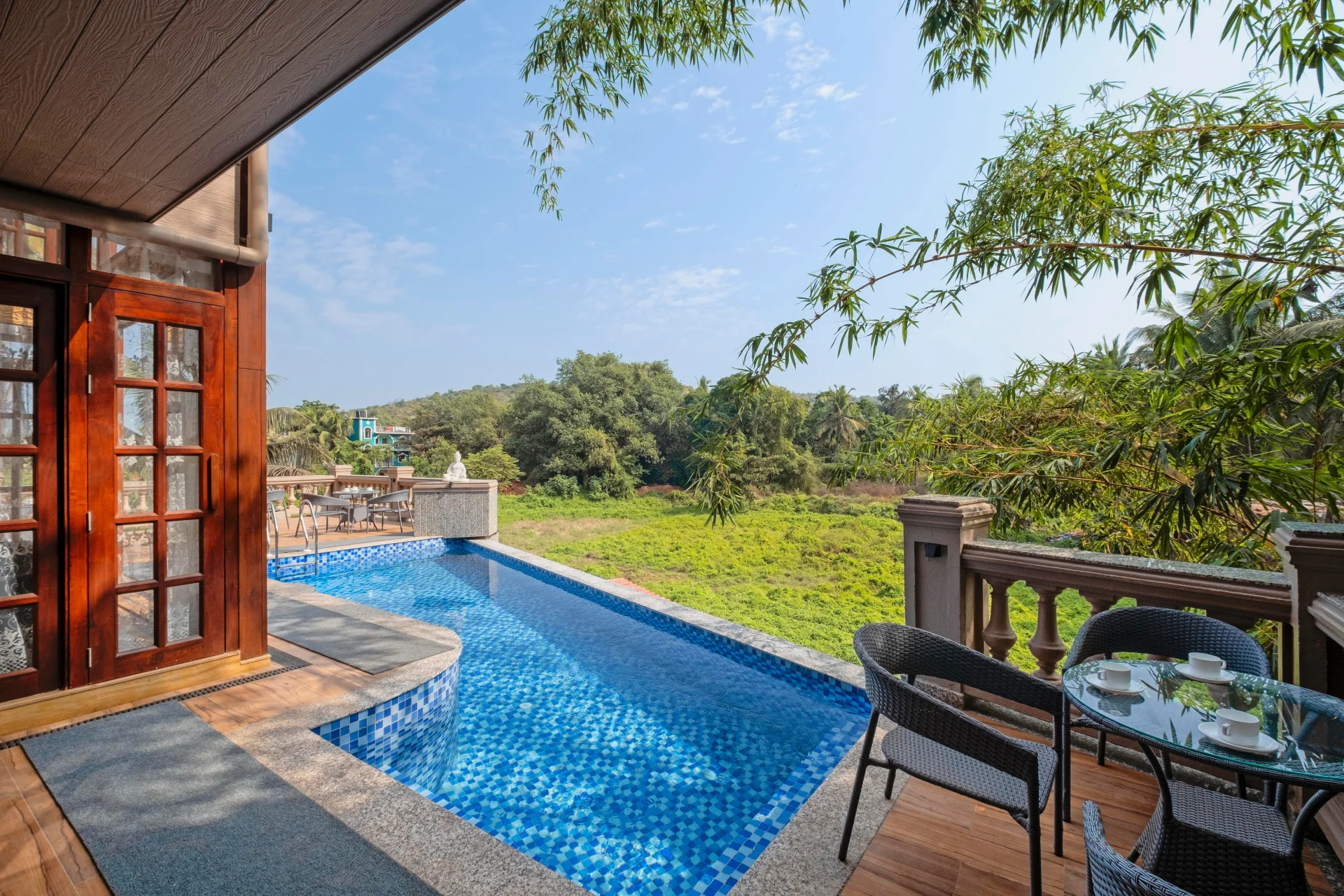 5 Bedroom Infinity Pool Villa In North Goa Showcased in a luxury retreat located in the center of Candolim, Goa. This vibrant and youthful residence boasts an expansive views of the surrounding fields. Relish the thrilling beaches of Candolim, which are merely a 6 min drive away, or spend your evenings dancing at the lively pubs.