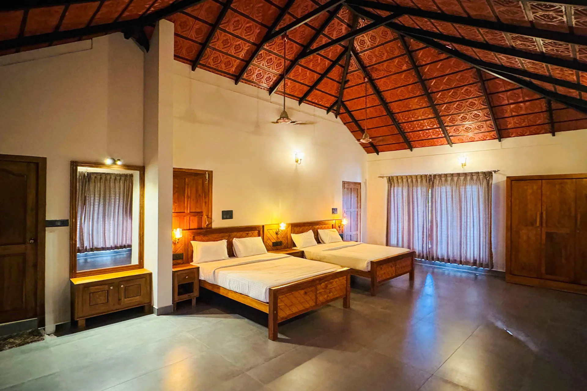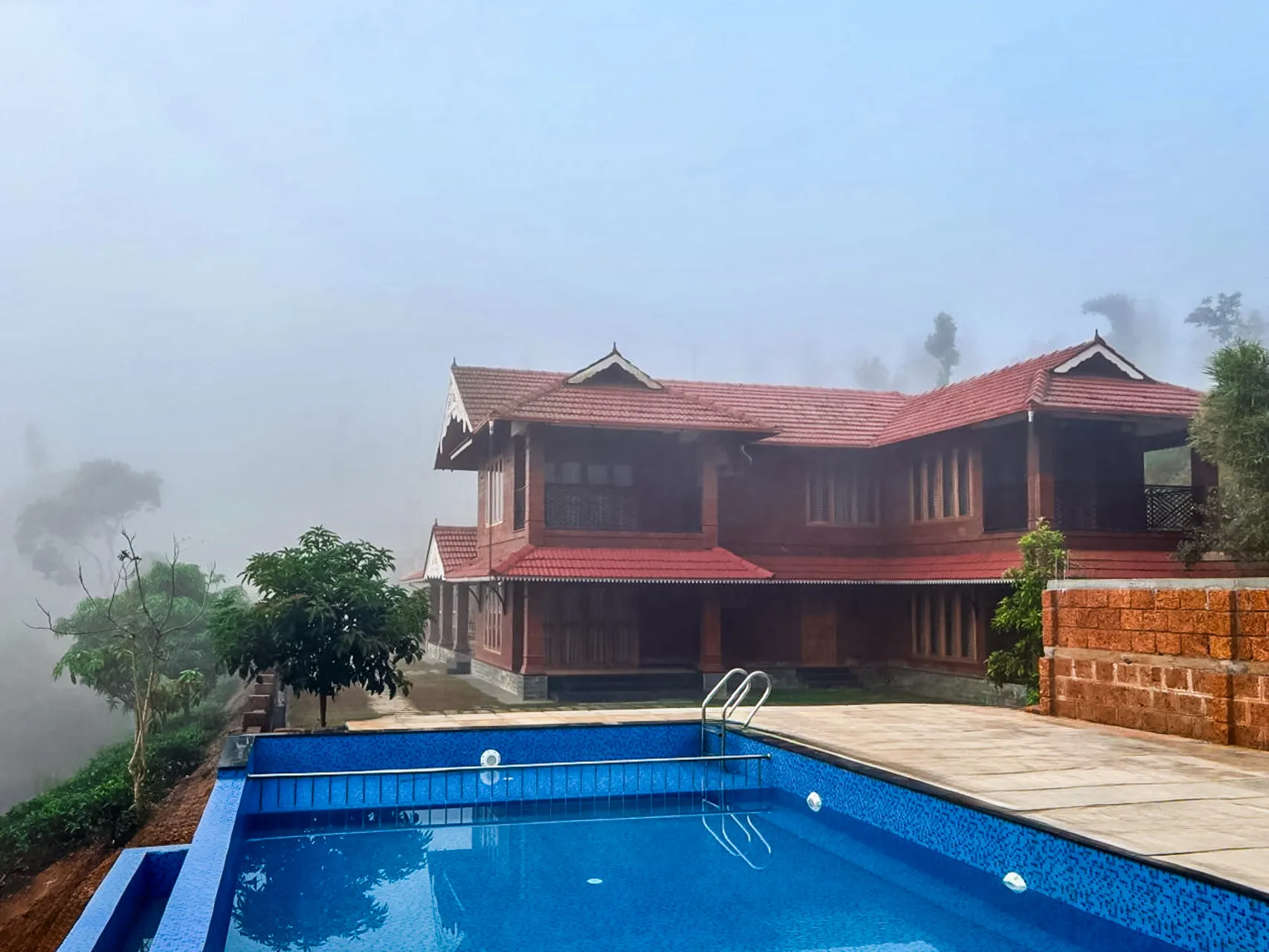 5 Bedroom Private Pool Villa In Wayanad Situated within the peaceful environment of a tea estate and surrounded by verdant landscapes, this opulent villa serves as an ideal sanctuary for individuals in search of serenity and comfort. The villa’s impressive Kerala-style exterior captivates attention and establishes the ambiance for an exquisite getaway.