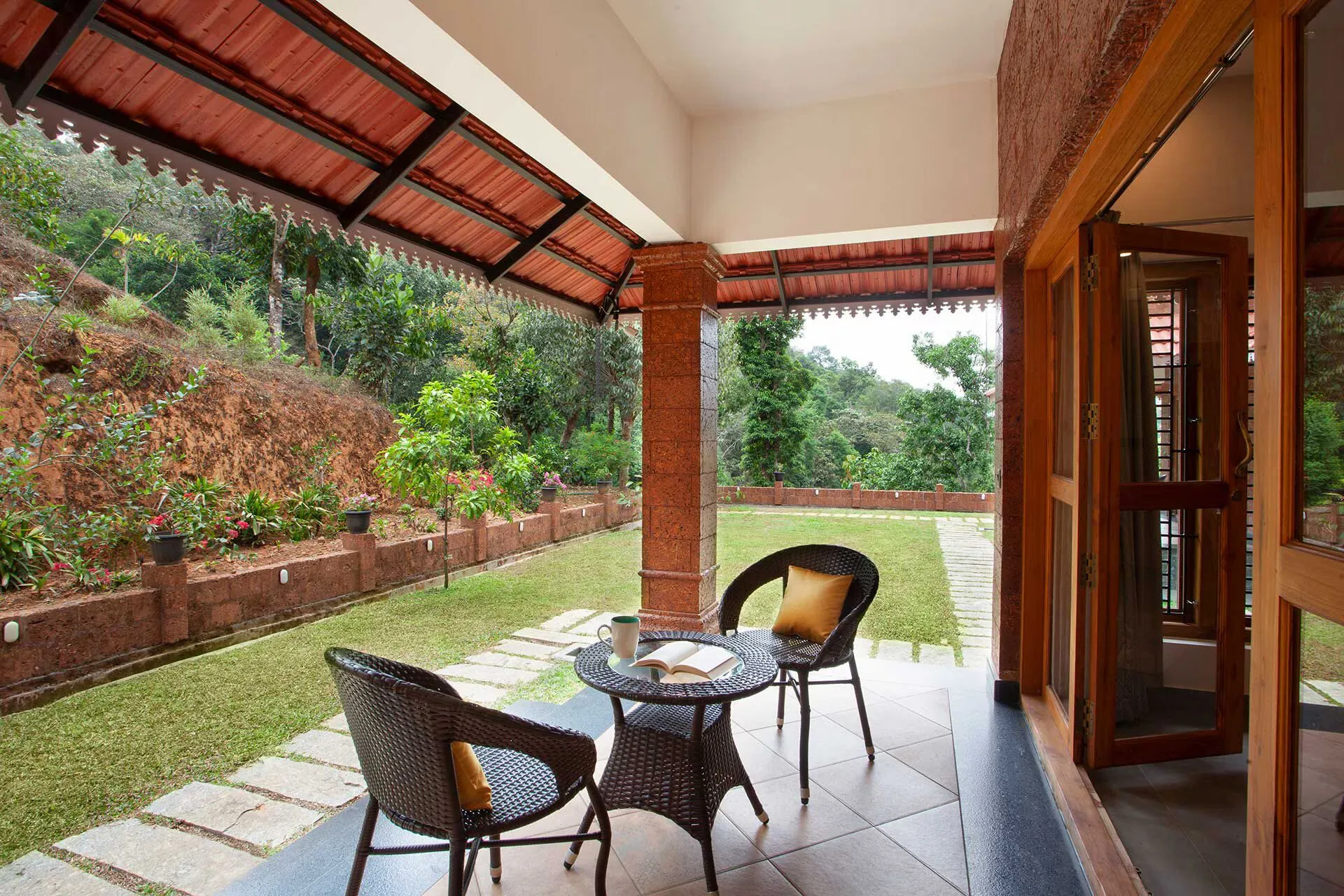 The expansive indoor areas are meticulously designed, showcasing a harmonious blend of modern and rustic decor, creating a soothing atmosphere that is a sensory delight. Each room features private, furnished balconies that overlook the surrounding tea estate, providing breathtaking views and a deeply enriching experience. An extensive patio serves as an ideal spot for guests to relax, unwind, and rejuvenate while enjoying the beautiful natural surroundings. Enhancing the allure of the property is a unique indoor courtyard that invites engaging conversations and leisurely afternoons.
