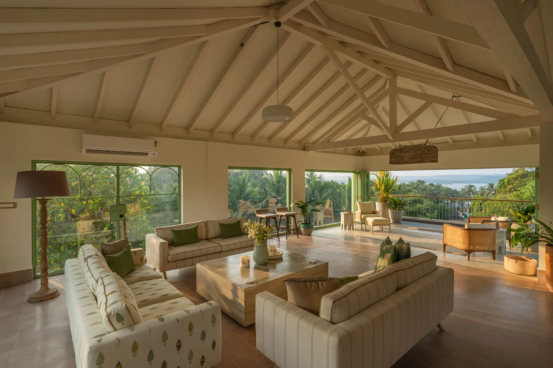 5 Bedroom Villa With Gym In Goa Mornings here commence with refreshing ocean breezes on the terrace, afternoons transition into leisurely swims in the outdoor pool, and evenings are illuminated with sundowners in the rooftop jacuzzi. Inside, the villa harmoniously combines coastal chic with sophisticated elegance — envision tropical hues, luxurious finishes, and sun-drenched lounges crafted for both tranquility and celebration.