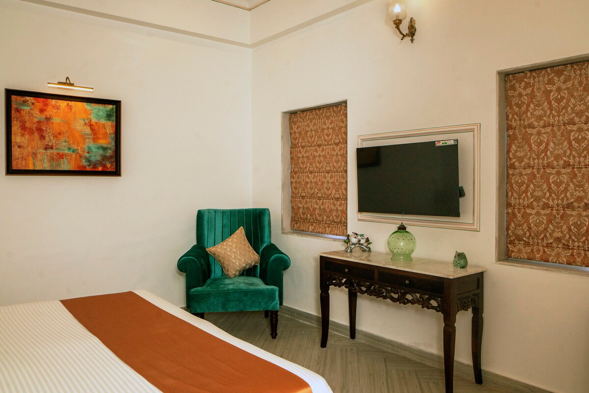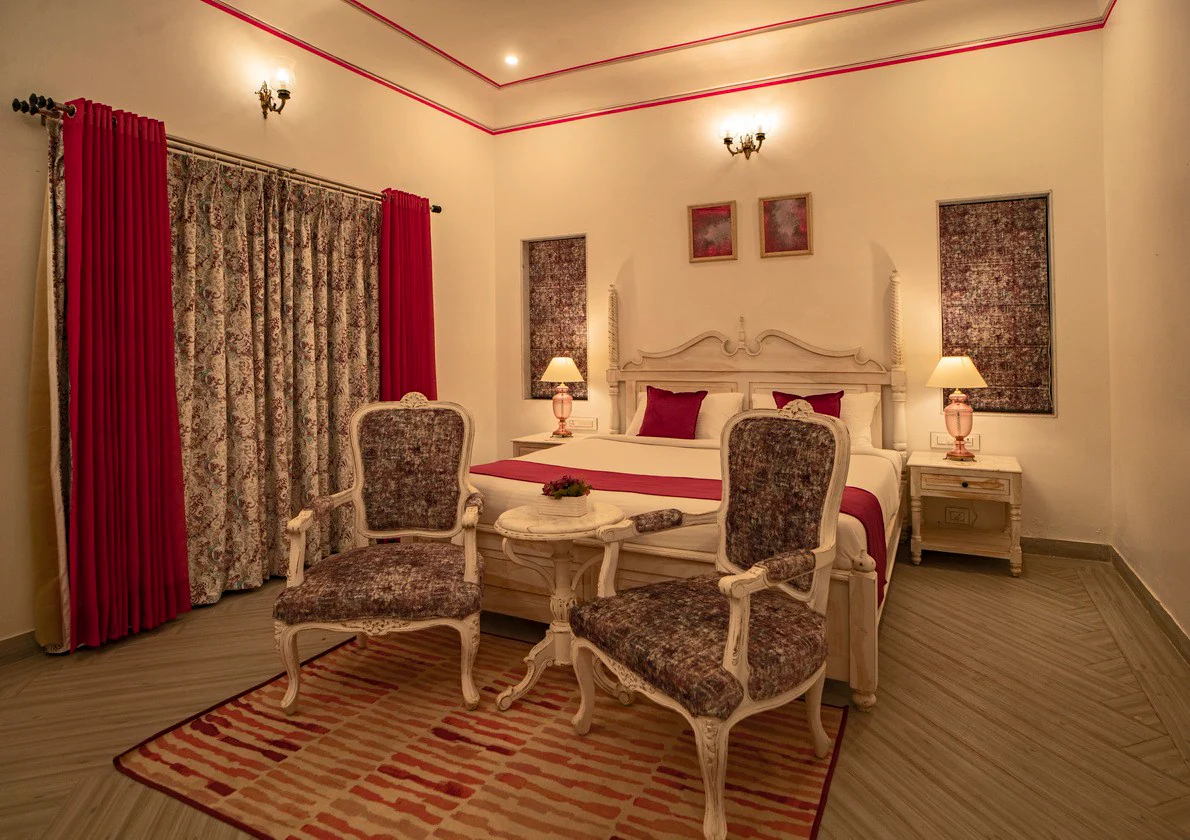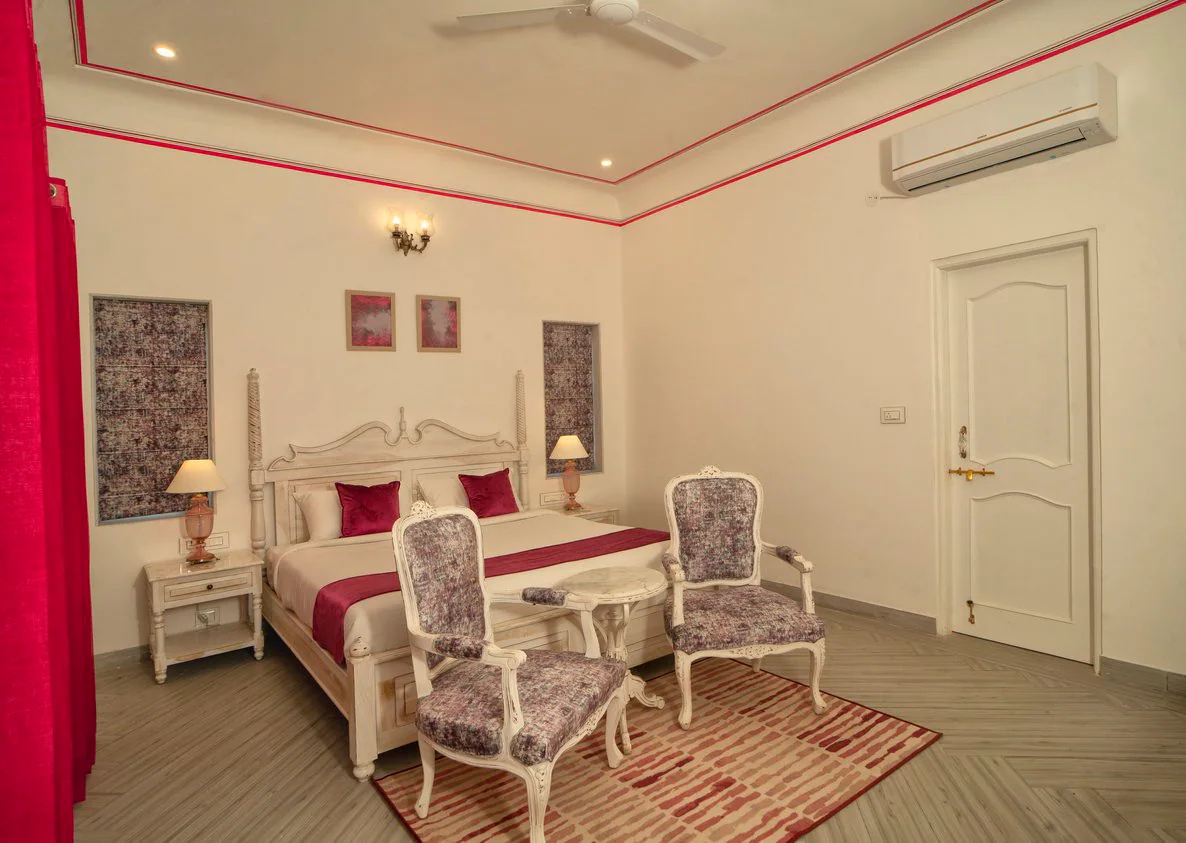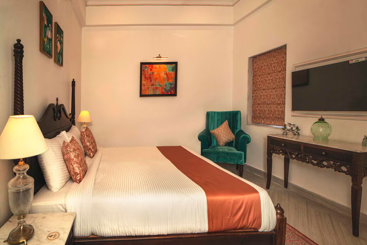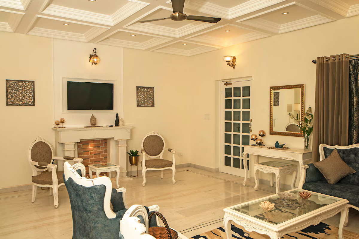 The spacious drawing room withs fire place and beautiful curved high ceiling will take you back to the 18th century vintage army bunglow. We offer a wonderful and a serene accommodation in udaipur. The house is built on the 18th century heritage army bungalows theme with a fire place and all modern amenities in the rooms. The rooms are airy, spacious and comfortable. Our place provides a fine experience of the by gone era of heritage of its own uniqueness, with refreshing ambience of Udaipur.