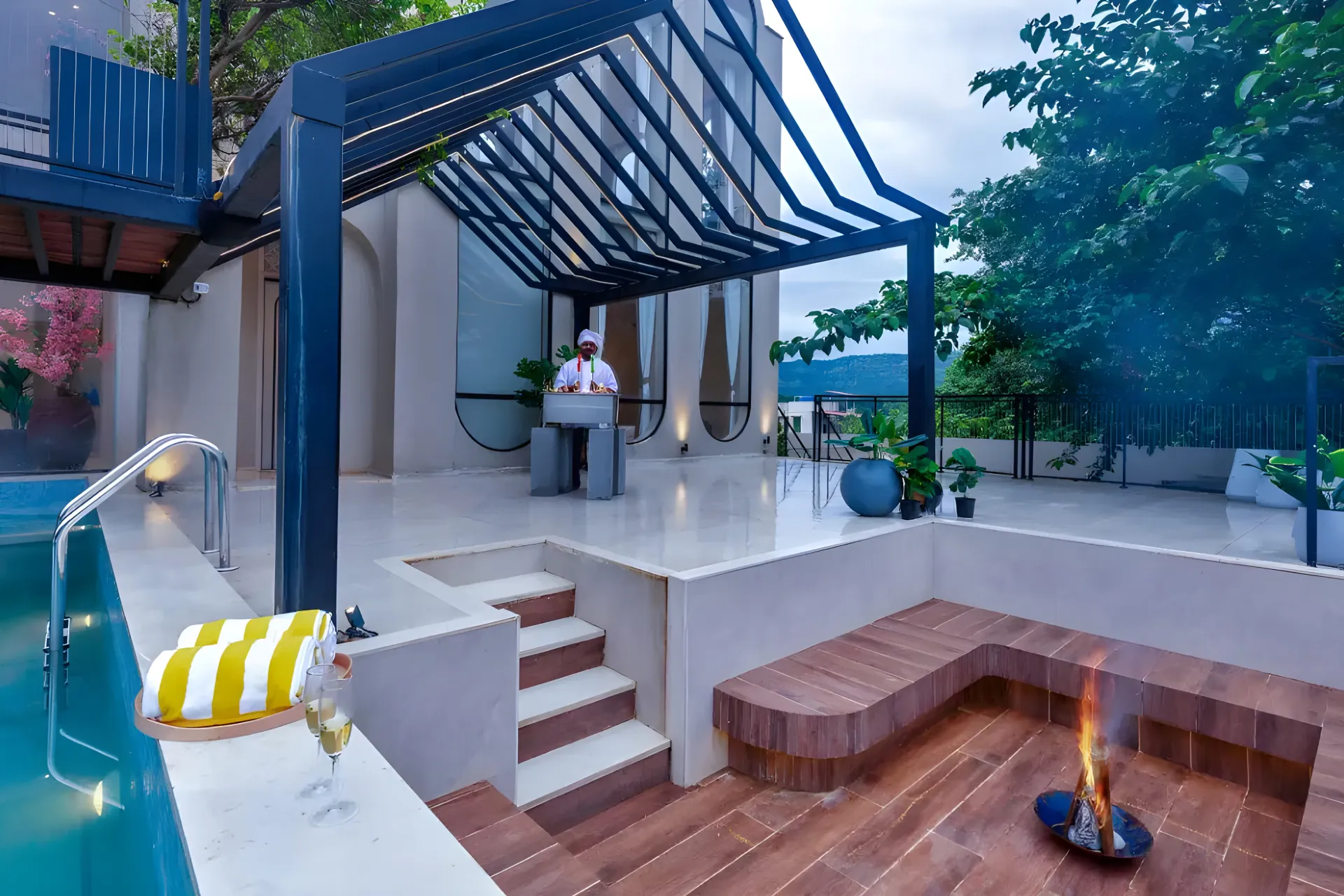 In keeping with the true Mediterranean spirit, every meal served here is exclusively vegetarian, offering a soulful culinary experience that harmonizes beautifully with the villaβs tranquil, nature-infused environment. Situated 89 km from Chhatrapati Shivaji International Airport in Mumbai, the villa is conveniently located near Kothaligad Fort at 14 km, Karjat Railway Station and Bhivpuri Waterfalls at 27 km each, and Panorama Point at 32 km.We recently spent a magical few days at luxury Villa in Udaipur booked through Villas On Demand and the entire experience was so amazing. Every detail of our stay was Carefully planned, making this trip an unforgettable one for all of us.