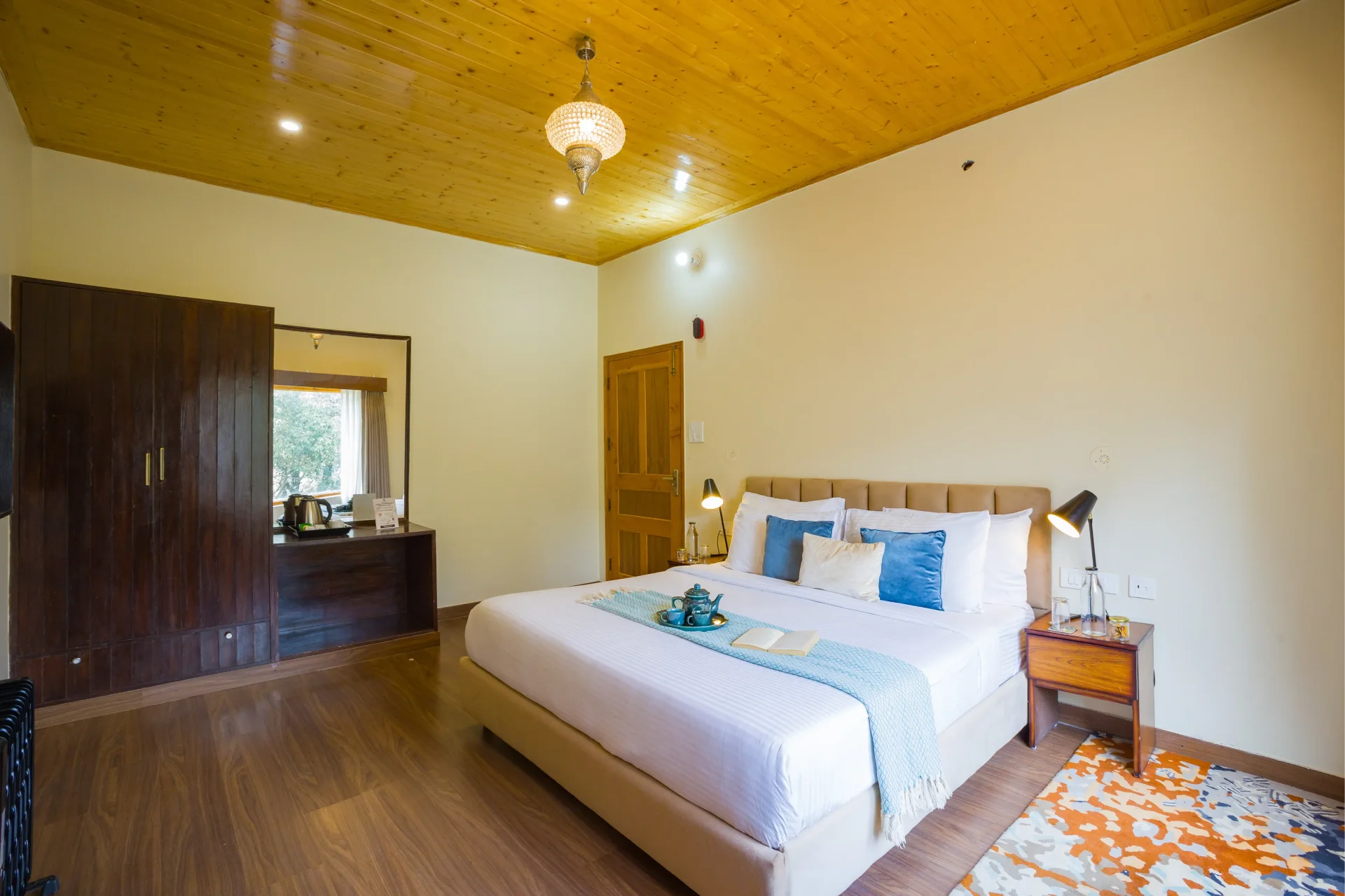 Lush greenery blankets the terraced garden, presenting unobstructed views of the rolling peaks. A stylish white wicker dining set, positioned around a glass-topped table, creates a perfect setting for leisurely breakfasts and intimate evening teas. Each bedroom radiates warmth and sophistication with its wooden interiors, entertainment unit, and expansive windows. A snug seating nook by the windows offers breathtaking views of the hills and verdant surroundings. The property is situated 30.6 km from Jakhu Temple and 40.2 km from Tara Devi Mandir. The closest airport is Shimla Airport, located 49.9 km from the accommodation.We recently spent a magical few days at luxury Villa in Udaipur booked through Villas On Demand and the entire experience was so amazing. Every detail of our stay was Carefully planned, making this trip an unforgettable one for all of us.