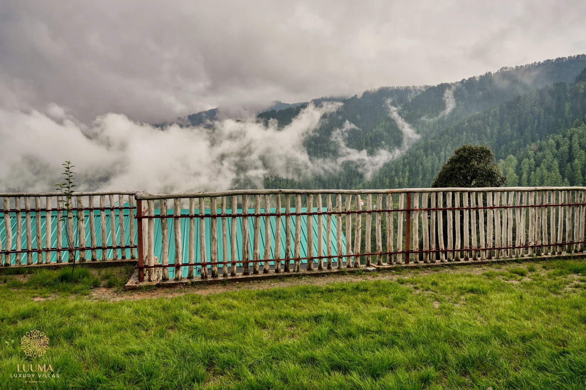 5 BHK Villa With Lounge In Shimla Situated on a picturesque hillside, this pet-friendly multi-level stone villa harmoniously combines rustic charm with modern elegance! Located in a tranquil, secluded environment and surrounded by majestic pines, its eye-catching turquoise roof contrasts beautifully with the textured stone facade.