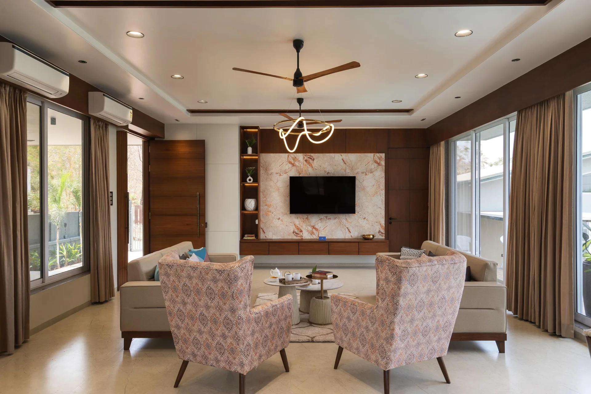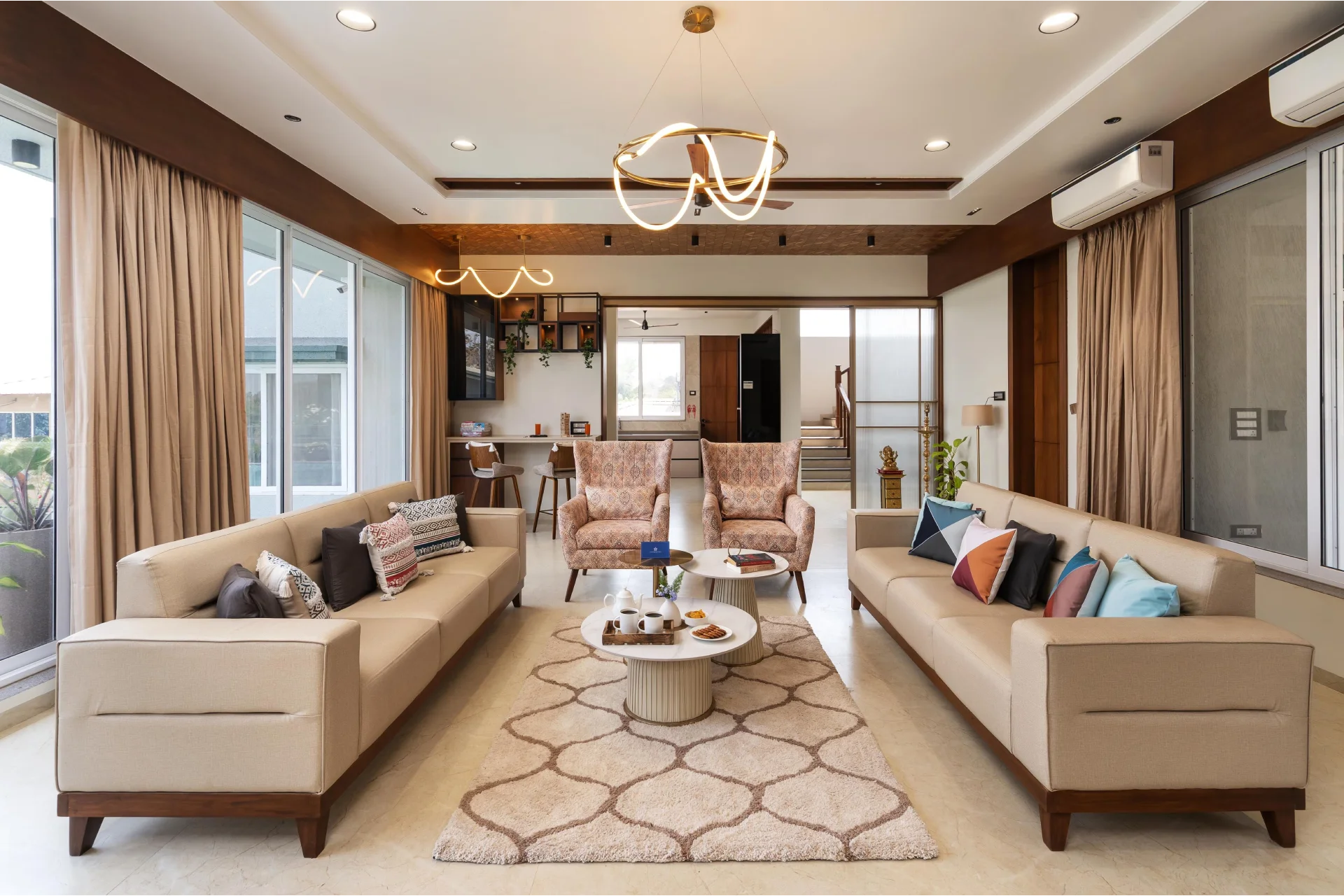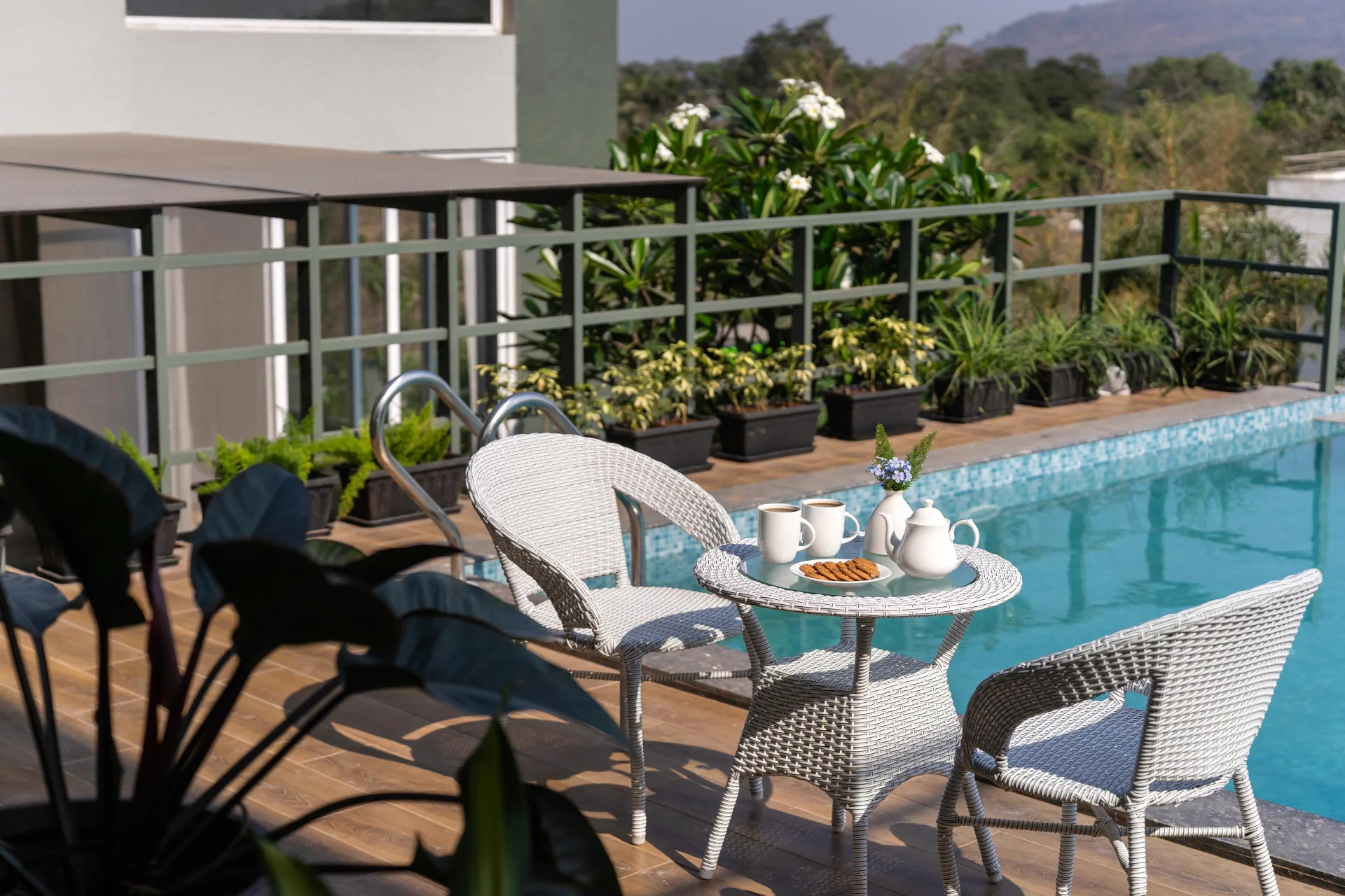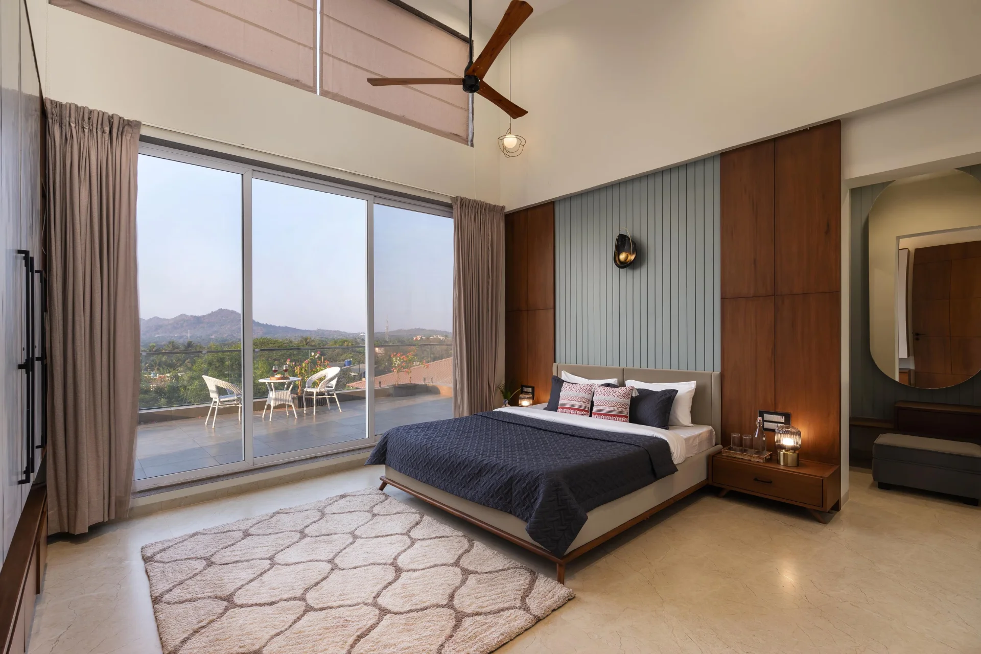 5 BHK Villa With Lush Garden Retreat to a peaceful villa in Alibaug, where opulence harmonizes with serenity. An infinity pool blends seamlessly with the horizon, providing breathtaking views, while sophisticated decor and bright spaces establish a naturally soothing getaway.