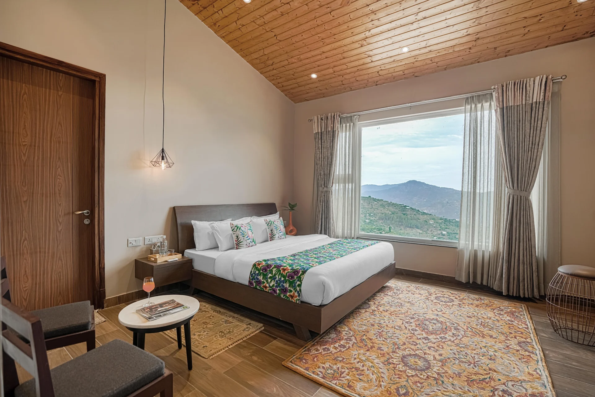 5 BHK Villa With Mountain View In Mukteshwar VODUK93 Villa is a delightful stone villa located in the tranquil hills of Mukteshwar, Uttarakhand. Experience breathtaking 180° views of the magnificent Himalayas, featuring the Nanda Devi and Trishul peaks.