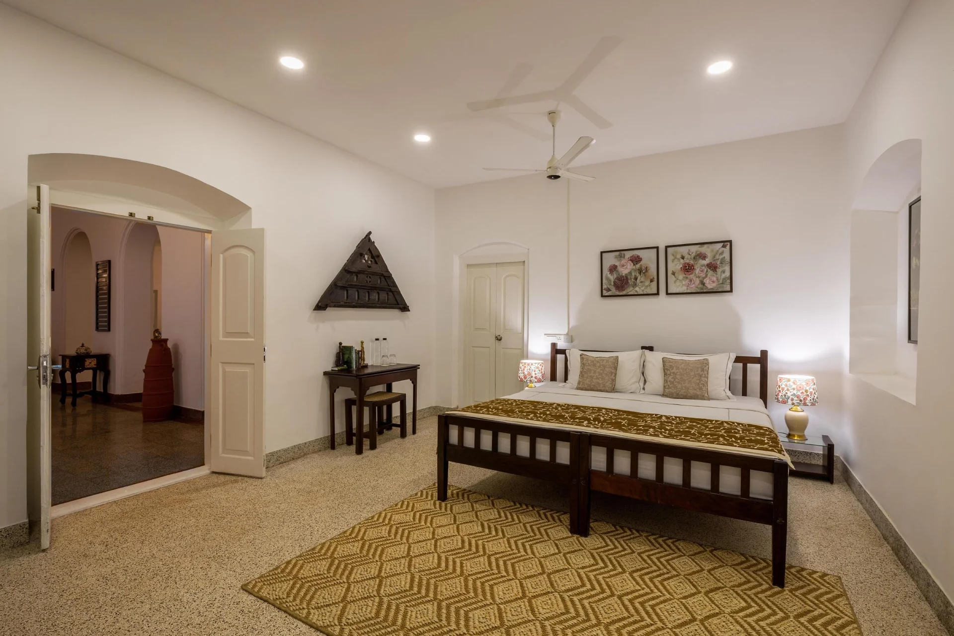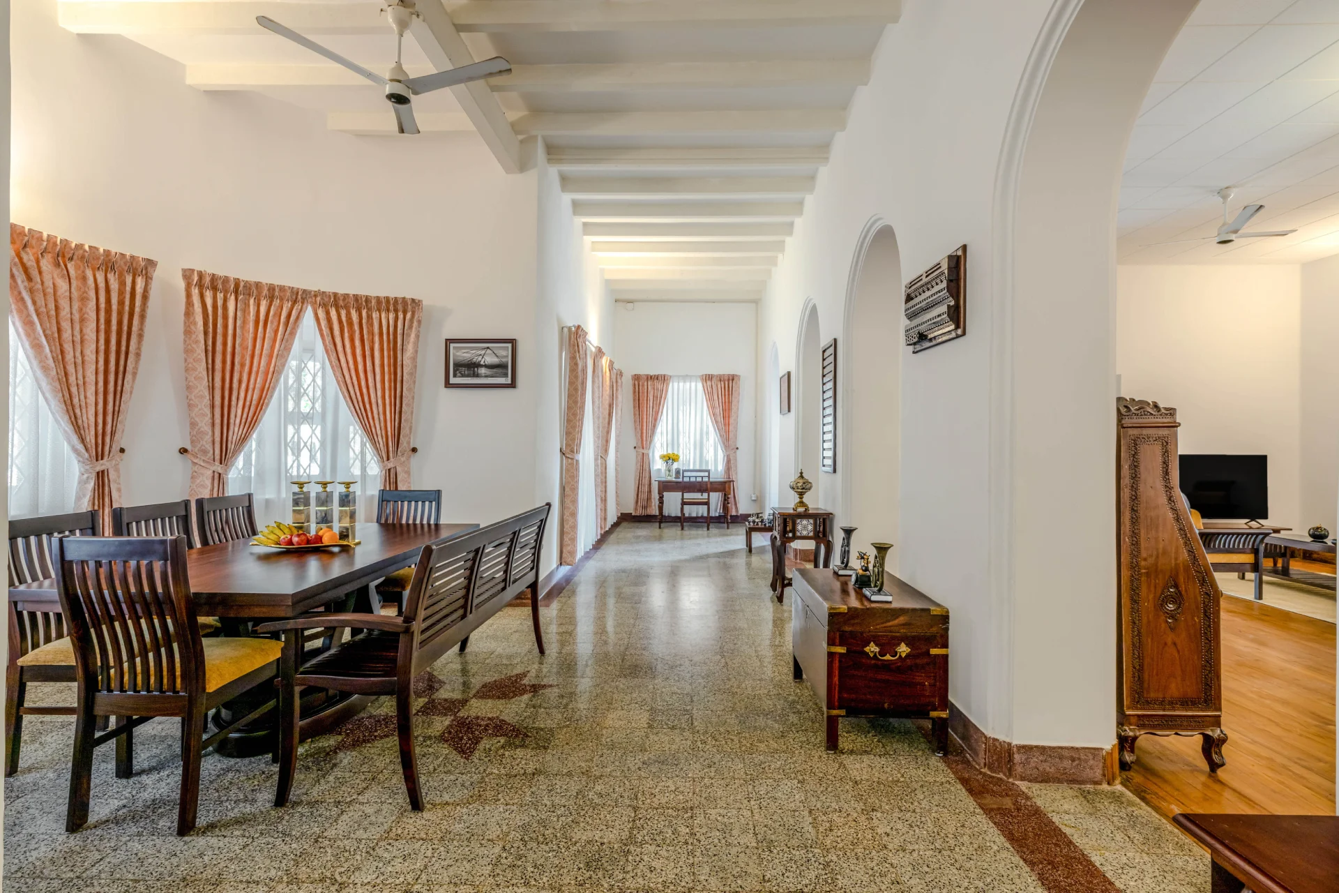 This villa in Kochi boasts a collection of exquisitely furnished rooms, each presenting a distinct view of the lush tropical gardens or the charming streets of Fort Kochi. The accommodations are fitted with air conditioning, high speed internet, and various modern amenities, harmoniously merging the traditional with the contemporary. The expansive verandas and communal spaces of VODSI09 Villa offer tranquil areas for guests to unwind, enjoy a book, or simply absorb the serene atmosphere. Dining at this Villa is an epicurean adventure through the tastes of Kerala.
