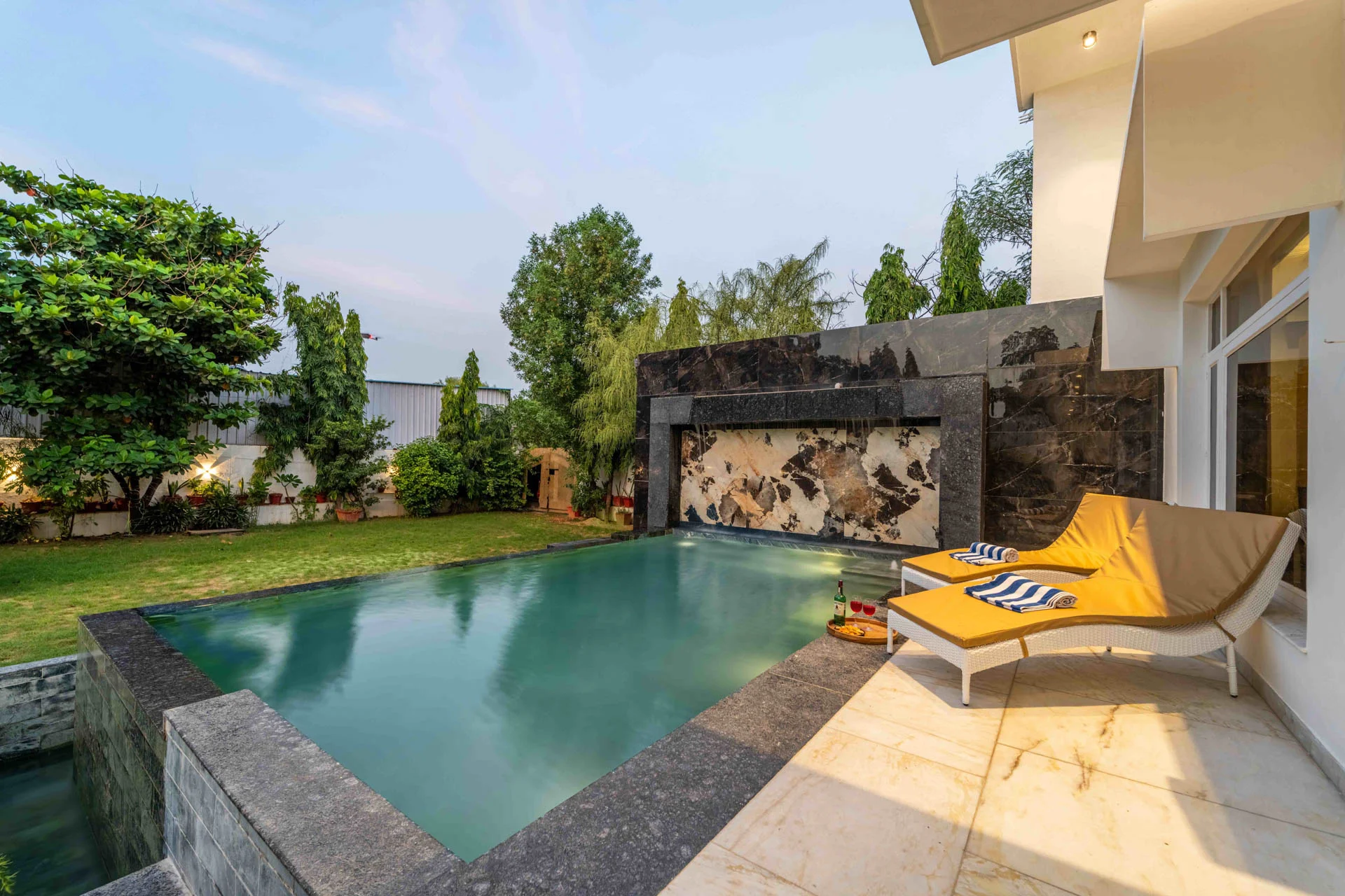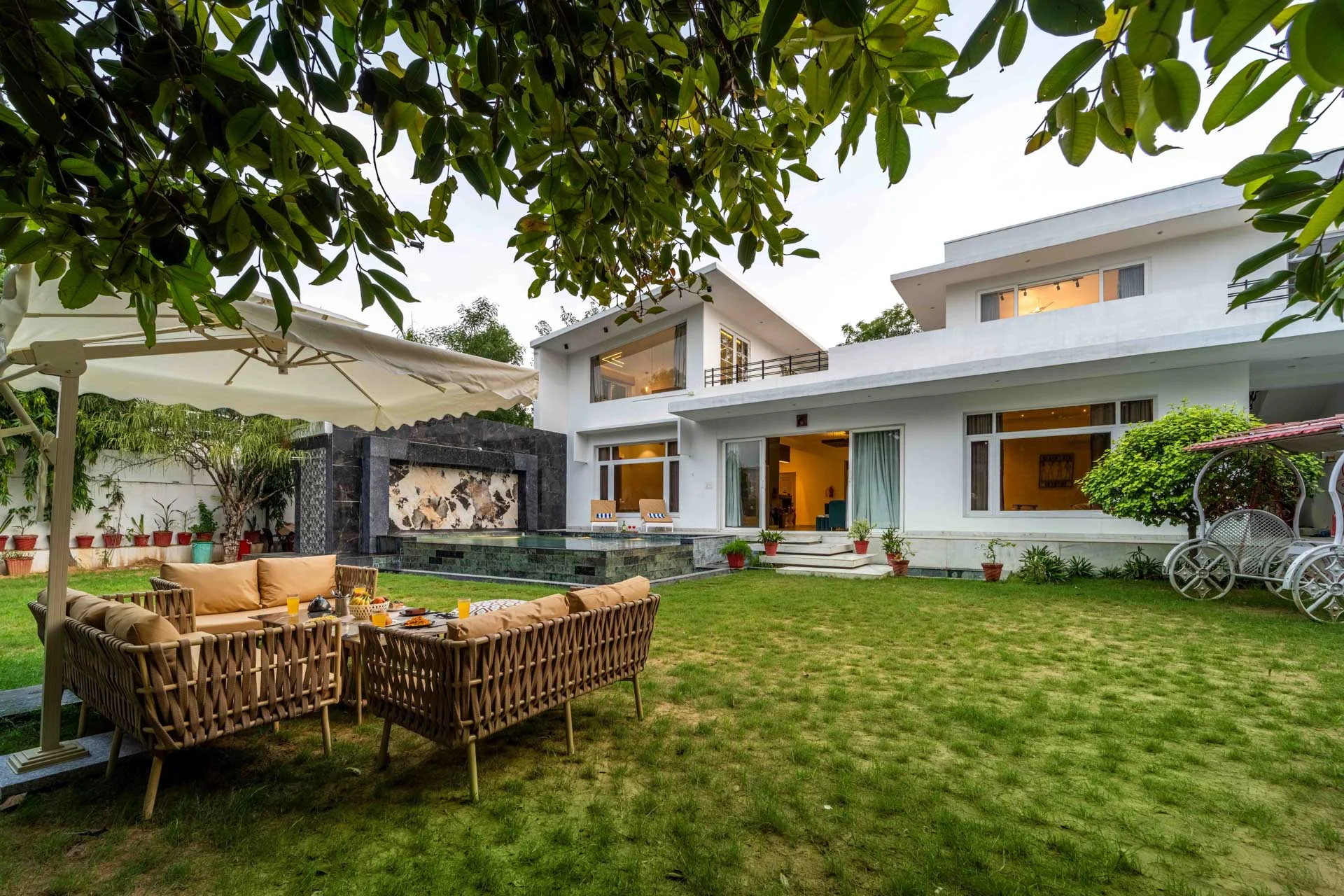 For indoor entertainment, the villa presents a charming assortment of board and indoor games—perfect for enjoying friendly moments with family and friends. Enter the well-kept lawn with its welcoming seating areas, or wander through the lush, landscaped garden embellished with a thoughtfully selected variety of plants. Situated 14 km from Jaipur International Airport, the property is conveniently located near attractions such as Govind Dev Ji Temple at 20 km and City Palace at 26 km.We recently spent a magical few days at luxury Villa in Udaipur booked through Villas On Demand and the entire experience was so amazing. Every detail of our stay was Carefully planned, making this trip an unforgettable one for all of us.