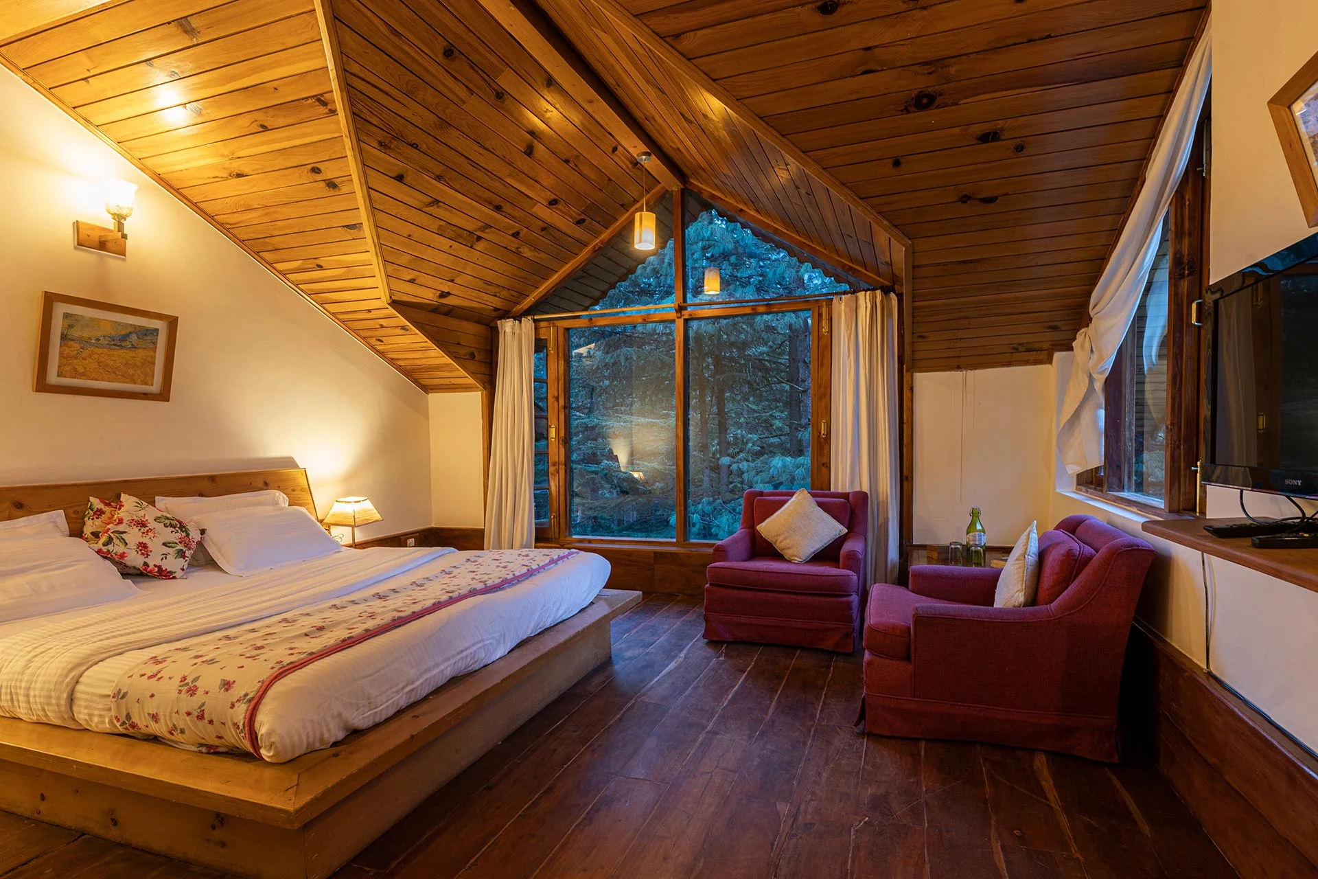 Awaken to the sounds of birds chirping, the gentle breeze, and enjoy the visually stunning landscapes from your private balcony. Showcasing the finest of Himalayan culture, do not miss the opportunity to discover the awe-inspiring treks and trails nestled within the dense cedar forests, and immerse yourself in every aspect of Manali through heritage walks. This holiday home offers a magical retreat, making it a paradise for nature enthusiasts. Visit this charming residence for a serene escape in the hills.
