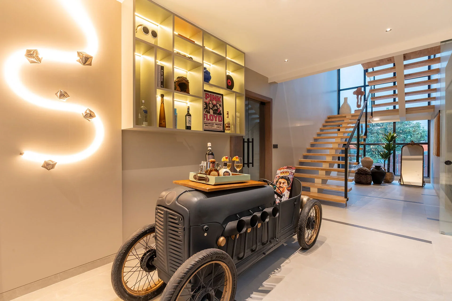 Additional facilities include a lift, an outdoor seating area, and complimentary on-site private parking. Enter to discover a seamless combination of contemporary and elegant interiors, where each detail radiates sophistication. In addition to a sparkling pool and a welcoming open jacuzzi, the villa boasts an expansive lawn ideal for memorable gatherings. Treat yourself to the luxury of a soothing bathtub after a tiring day, and relax at the chic bar that encourages unwinding.