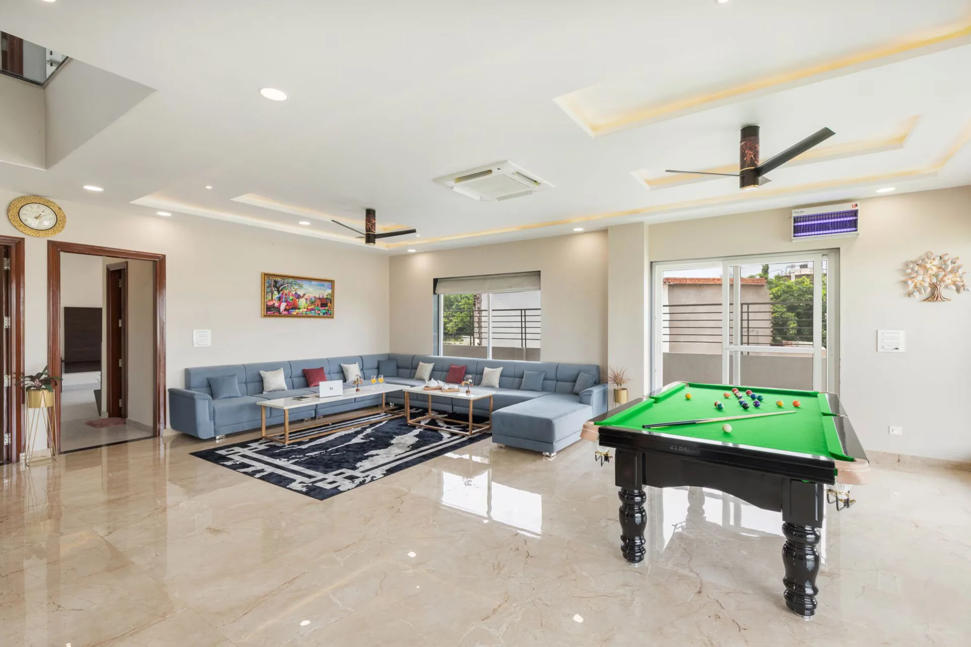 6 BHK Private Pool Villa In Jaipur Escape to a charming holiday residence, nestled in the center of Jaipur; VODRJ175 Villa invites you to abandon the mundane and step into a domain where tranquility is paramount. As you explore further, you will uncover an expansive garden, ideal for peaceful evenings of reflection.
