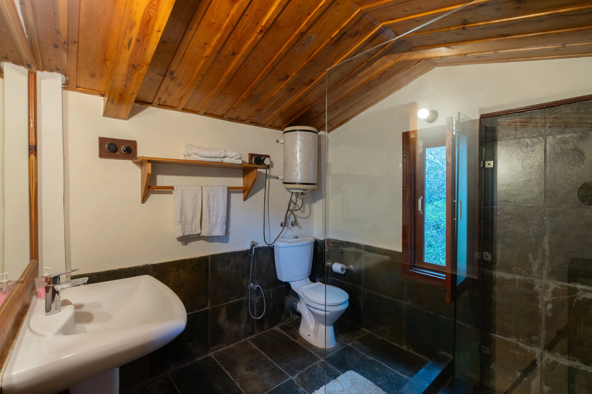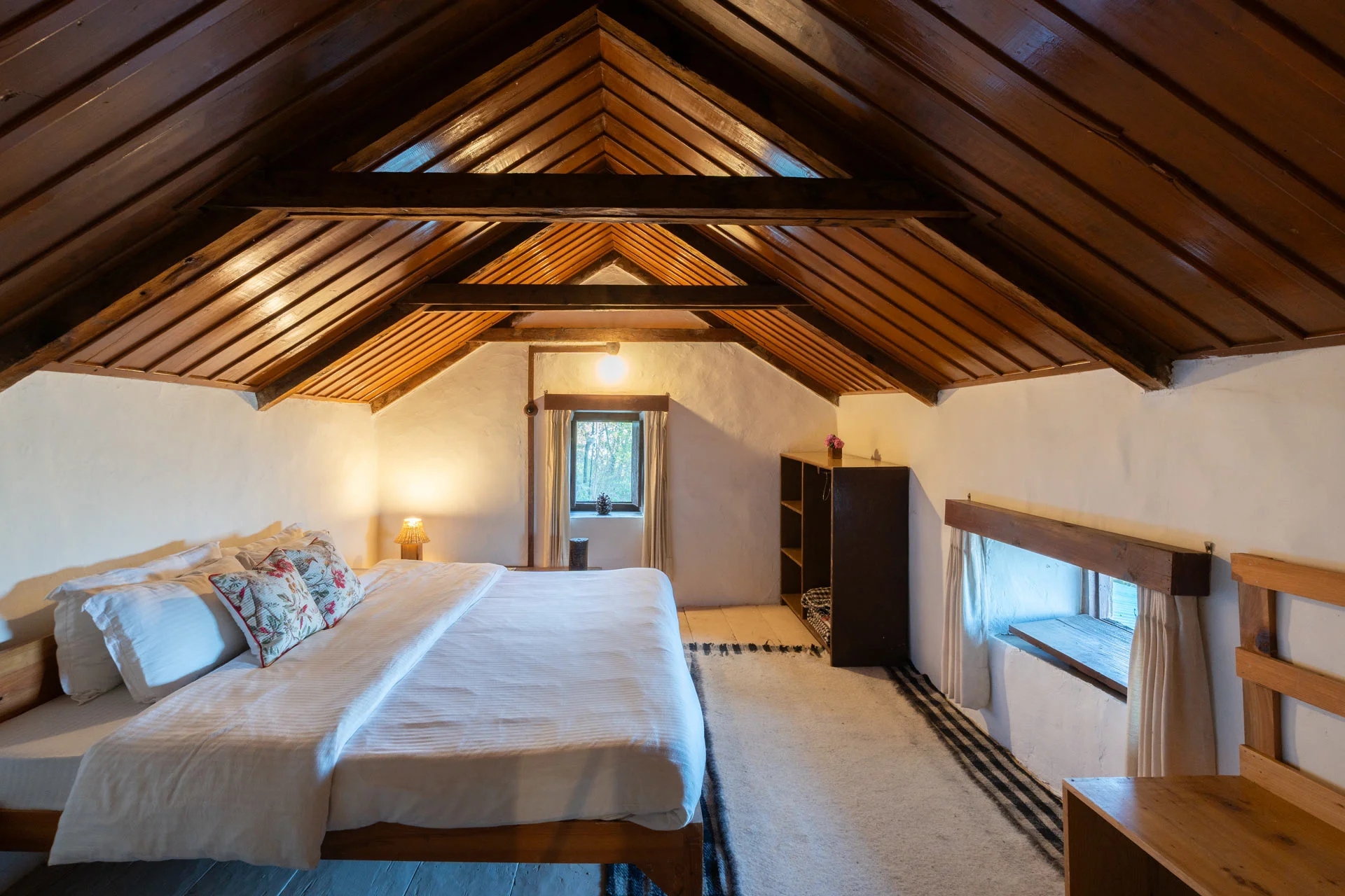 6 Room Valley View Villa in Shimla features three distinct units, each designed to resemble a quaint mountain cabin, allowing guests to select their own private retreat while still relishing the estateβs communal allure. Each unit is equipped with its own lawn, ideal for sunlit yoga practices, picnic gatherings, or simply gazing at clouds until they morph into tales.