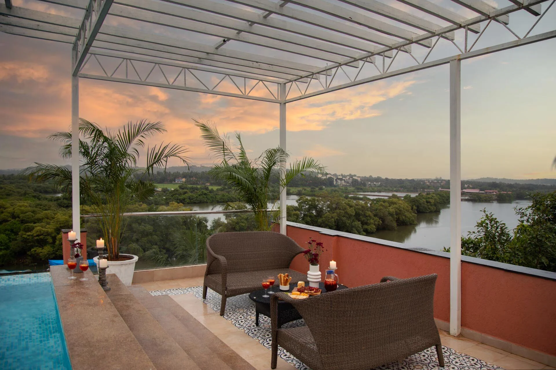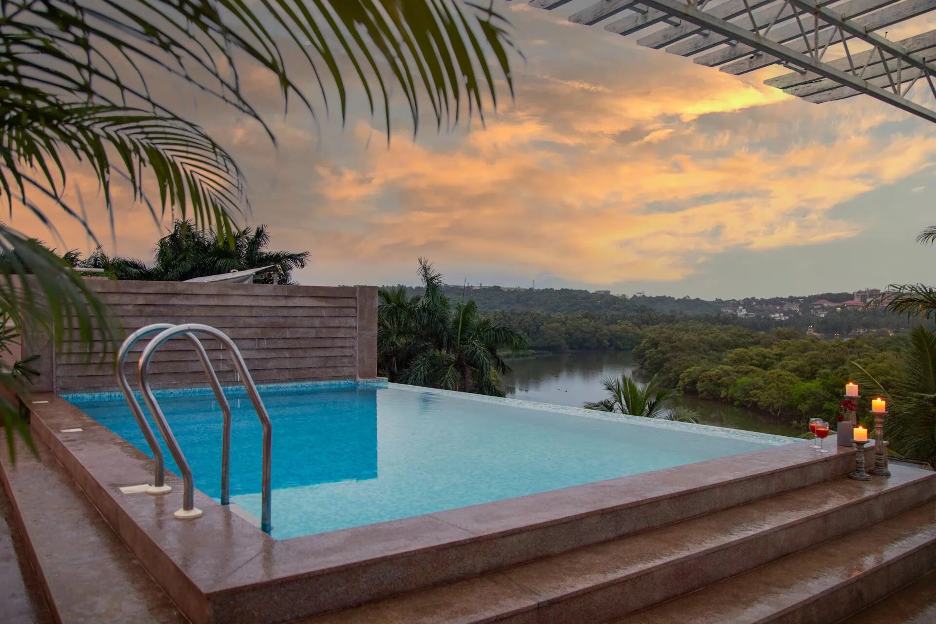 7 BHK Villa With Rooftop Pool In North Goa If you seek a luxurious and quintessential experience in Goa, Villa VODGA141 is the perfect residence for you and your loved ones. The stunning riverside garden is certain to bring joy, but the highlight is the private rooftop pool that offers unparalleled views of the lush landscape and meandering river.