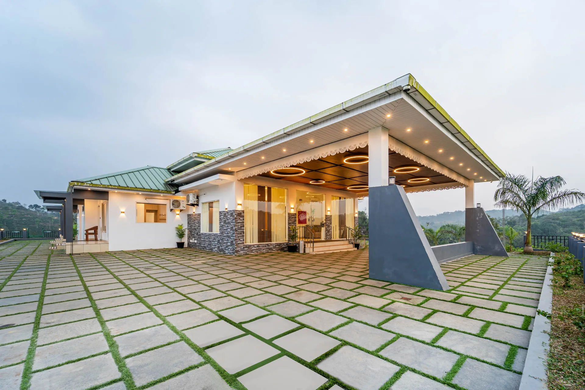 VODSI45 Villa is an exquisite 8 Bedroom Villa With Gazebo In Wayanad residence that exemplifies a harmonious fusion of contemporary luxury and the splendor of nature. Nestled within the verdant landscapes of Wayanad, the villa’s pristine white facades provide a remarkable contrast to the lively green environment, presenting a serene getaway.