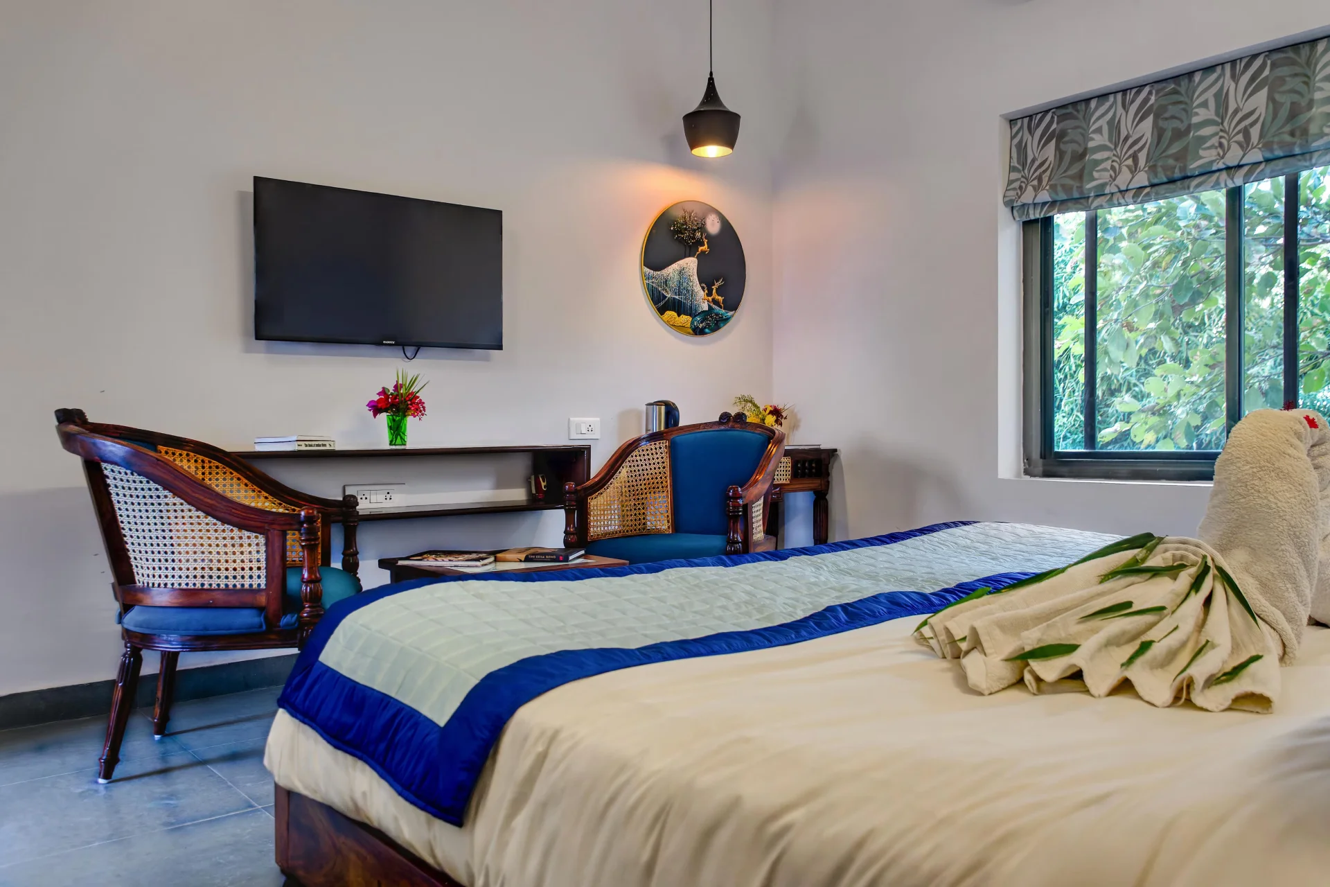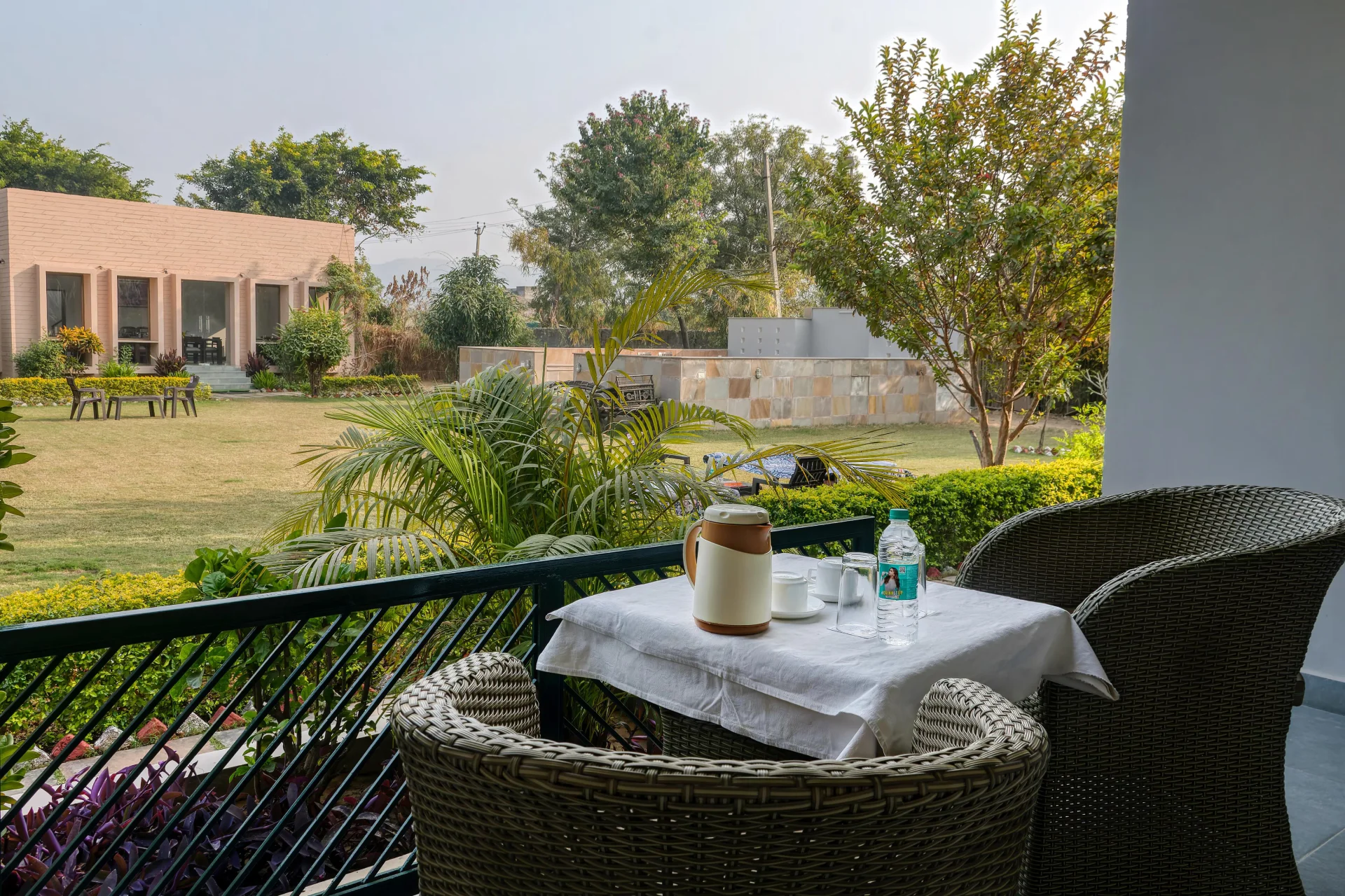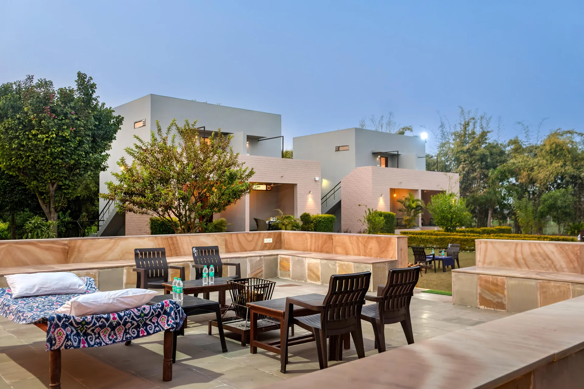 The homestay offers private check-in and check-out services, a lounge, outdoor fireplace, 24-hour front desk, housekeeping, an indoor play area, badminton equipment rental, outdoor seating, picnic area, family rooms, full-day security, express check-in and check-out, room service, tour desk, and luggage storage. Breakfast options include continental, buffet, ร  la carte, vegetarian, vegan, gluten-free, halal, kosher, and dairy-free selections. Indian cuisine is available in the restaurant. The National Chambal Sanctuary is located 49 km away, while Jaipur International Airport is 128 km from the property.