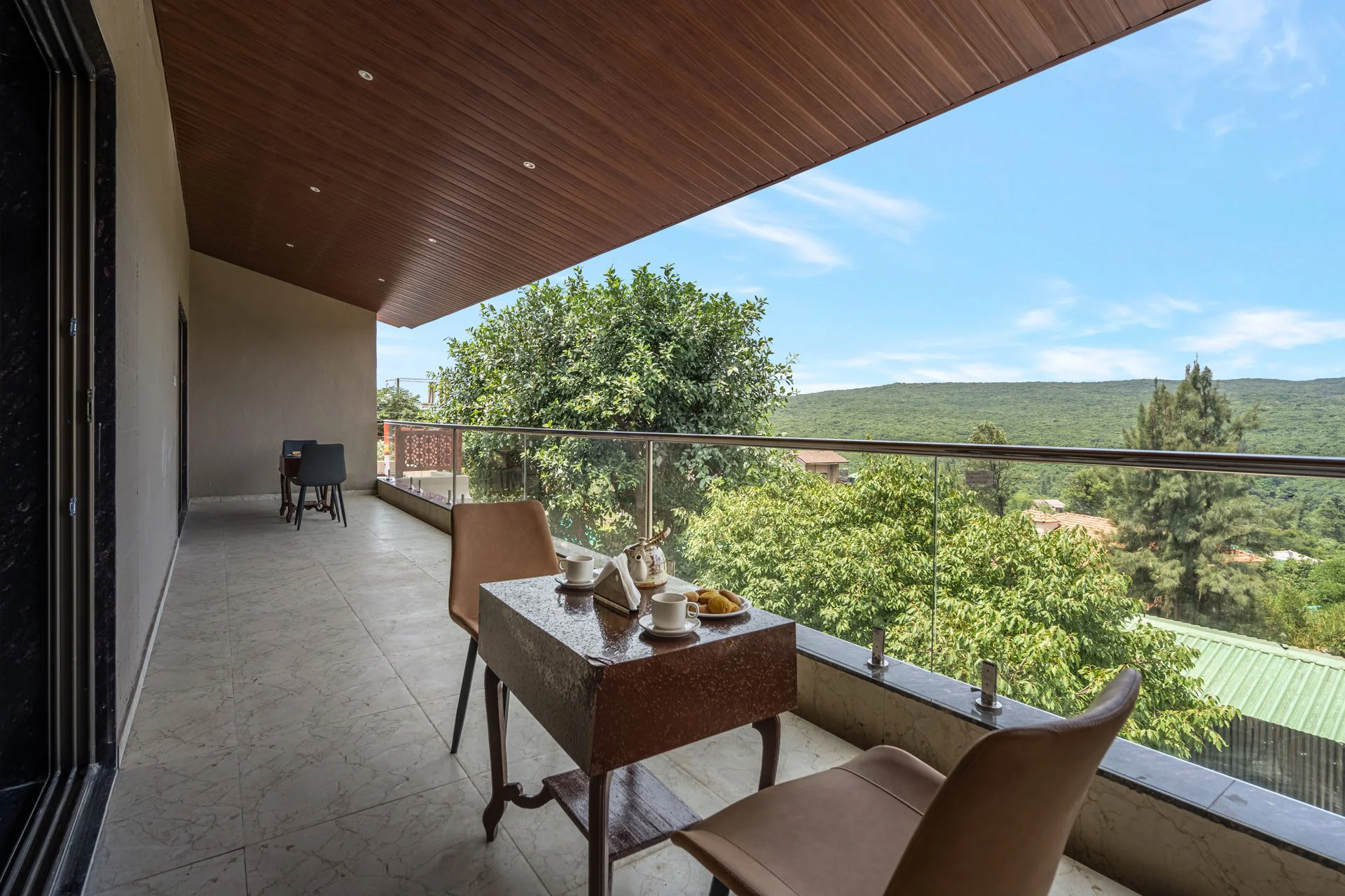 Walking down a brick-paved path, the picturesque surroundings of the VODMH286 villa in Mahabaleshwar give a feeling of paradise. The red-tiled roofs take you back to ancient times, while the traditional Rajasthani interiors provide a wonderful contrast. Every corner of this villa is designed to ensure a tranquil experience, and the lavish amenities add to its charm. The sparkling pool blends harmoniously with the surrounding views. With the terrace perfect for an evening cup of tea, time spent in this villa flies by, leaving you yearning for more. A true embodiment of perfection, this villa offers a unique experience.