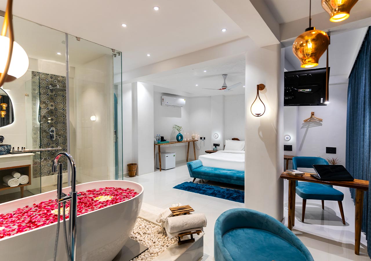 Imagine waking up to a view of Lake Pichola, lit up by the reflections of sunlight all from your bed at VODRJ14 8 Rooms Luxuria Villa Udaipur. This is not just any boutique Villa, itβs an architectural wonder in Udaipurβs old city, whispering stories of royalty and romance. For couples, it is simply a fairy tale. Fantasise about strolling to the City Palace holding hands or getting lost in the colourful markets all within walking distance.