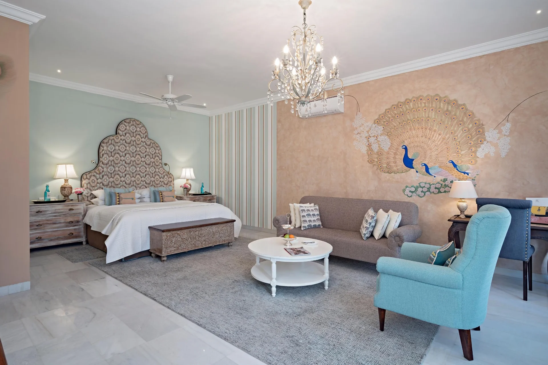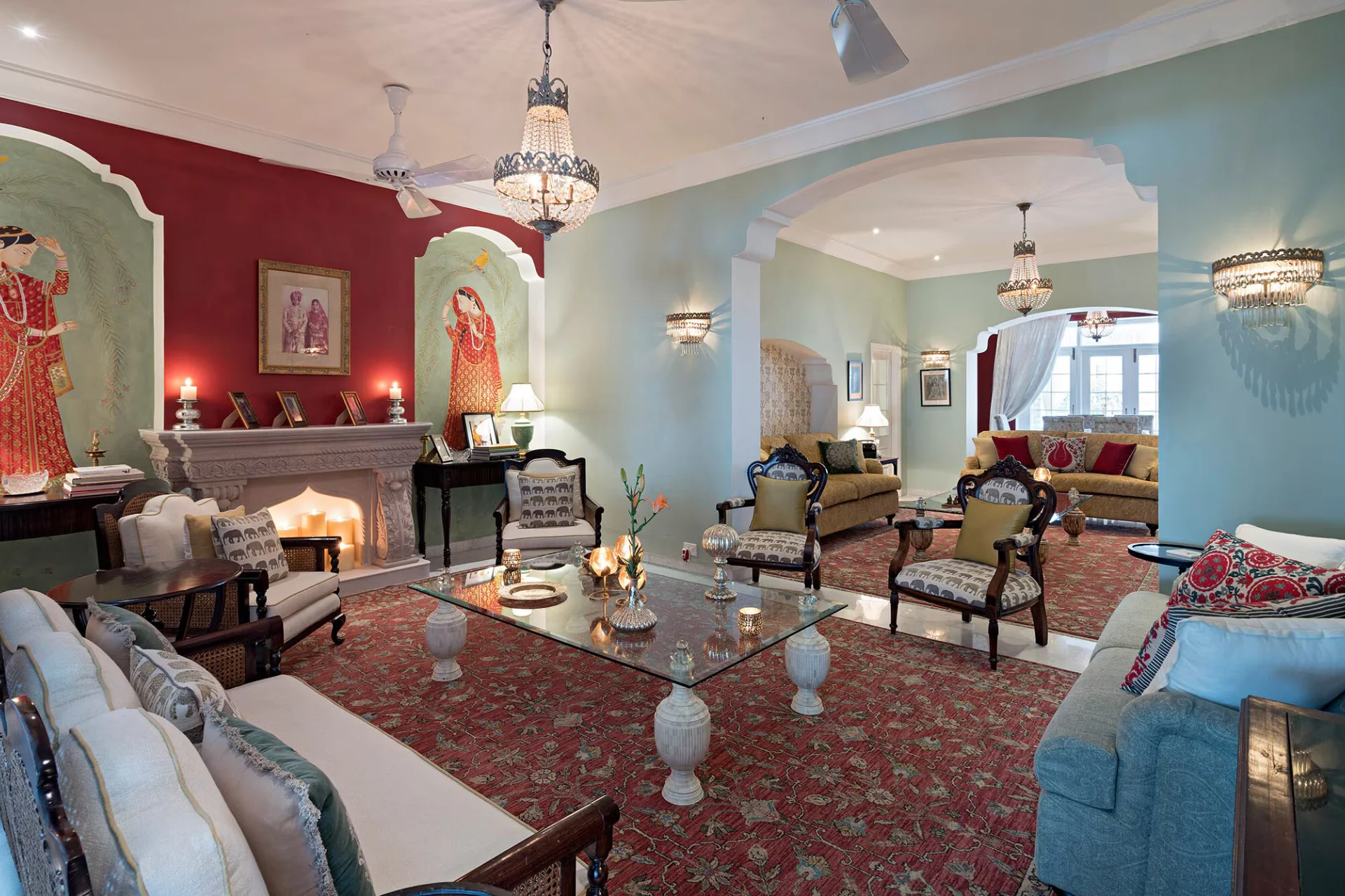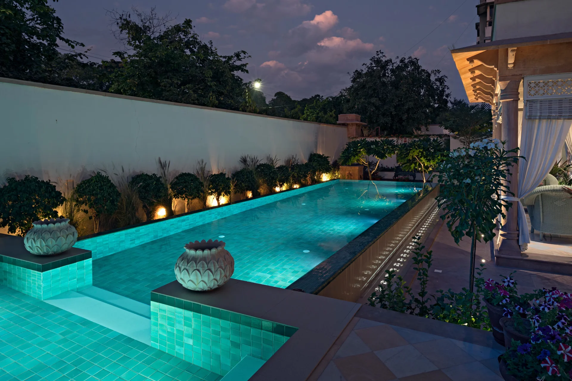 9 Bedroom Villa With Pool In Jodhpur Occupying an area of 14,000 square feet, this exclusive property has been meticulously transformed into a Luxury Residence that includes six Suites and two Rooms, an impressive swimming pool, a tastefully decorated plush dining room, welcoming lounges and verandas, as well as a verdant garden.