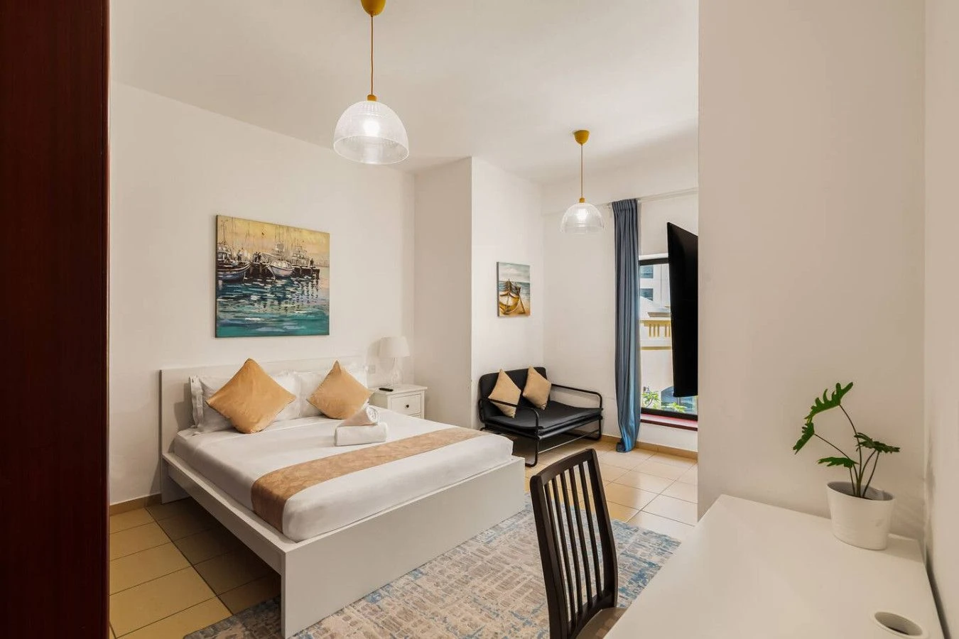 Deluxe 4BR Apartment on JBR Beach In Dubai Stunning apartments located on JBR Beach, within walking distance to Bluewaters Island, are found in Dubai, providing convenient access to Marina Beach, The Walk at JBR, and Bluewaters Island.