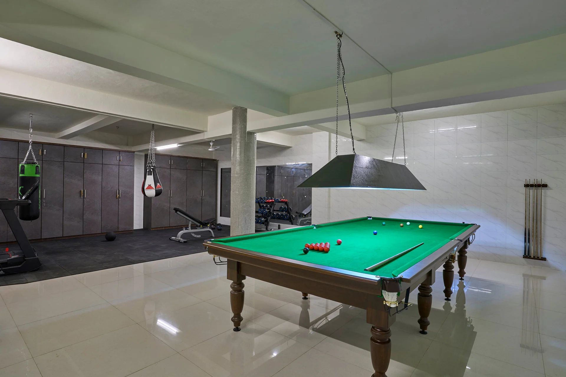 VODMH57 villa featuring a Swimming Pool, Lawn, and Bonfire is situated in Panchgani. Following a day brimming with activities, each of the five bedrooms offers a cozy and welcoming sanctuary. A notable highlight of the villa is the spacious recreational room, which is equipped with a gym and a snooker table, providing plentiful entertainment choices for all guests indoors. Visitors can take advantage of the outdoor amenities by refreshing themselves in the pool or unwinding on the meticulously maintained lawn.