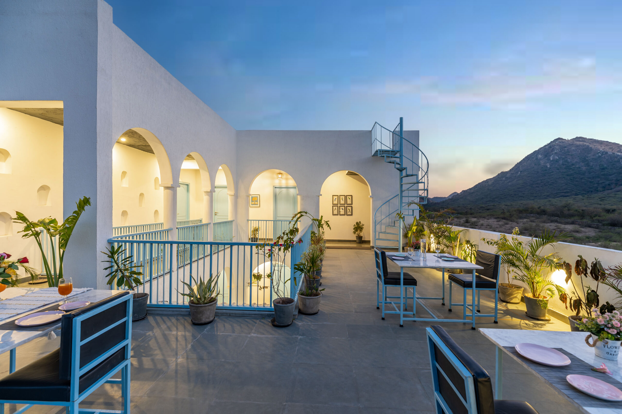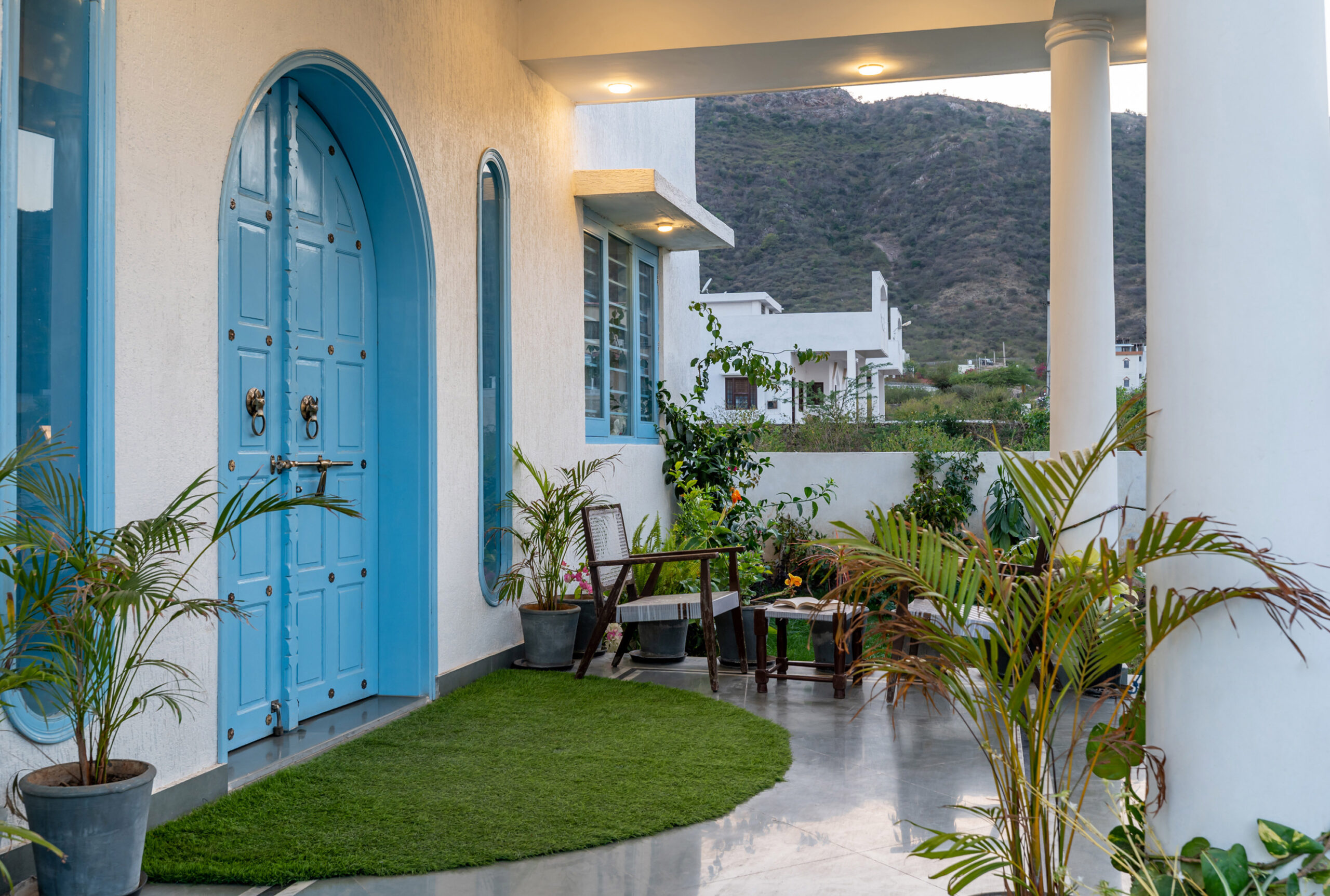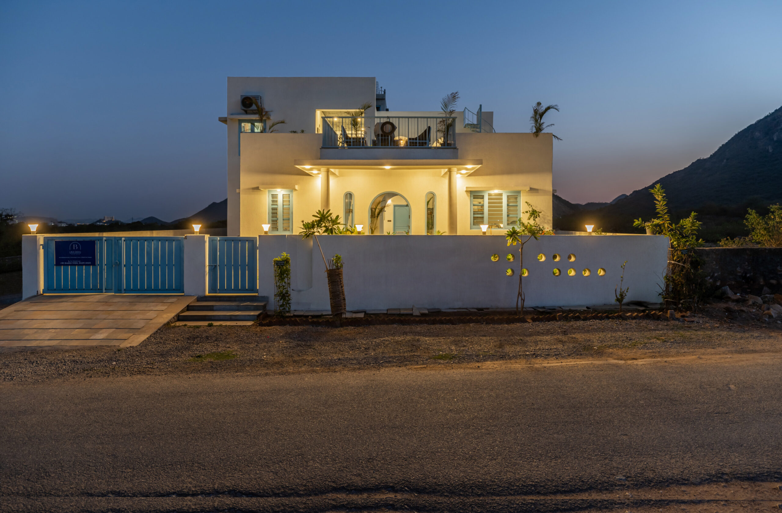 Greek Villa Udaipurs most exclusive getaway surrounded by Aravali range. A unique accommodation experience with bespoke luxury, sumptuous food & hospitality. A beautiful & luxurious Greek architectured villa amid the Aravalli hills, just a few kilometres away from the famous Lake Fatehsagar.