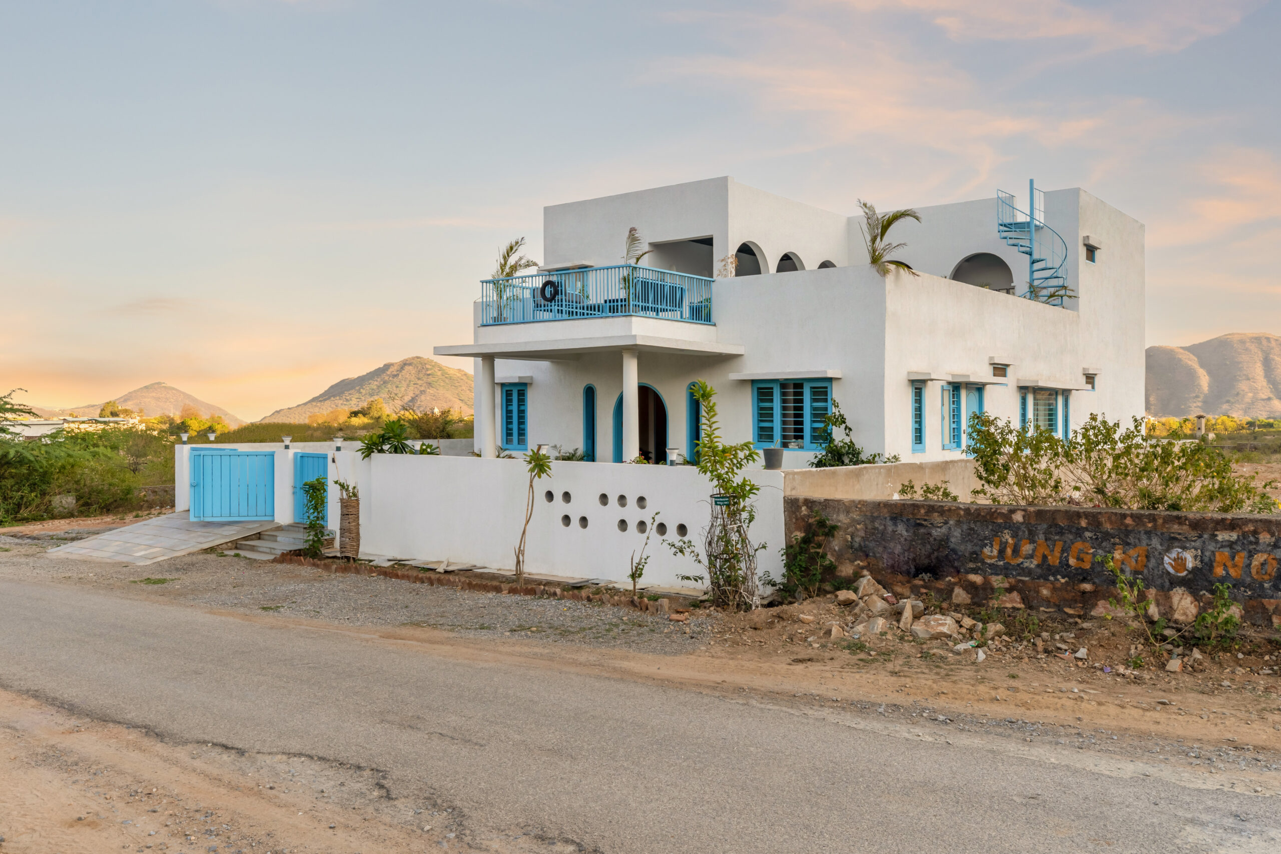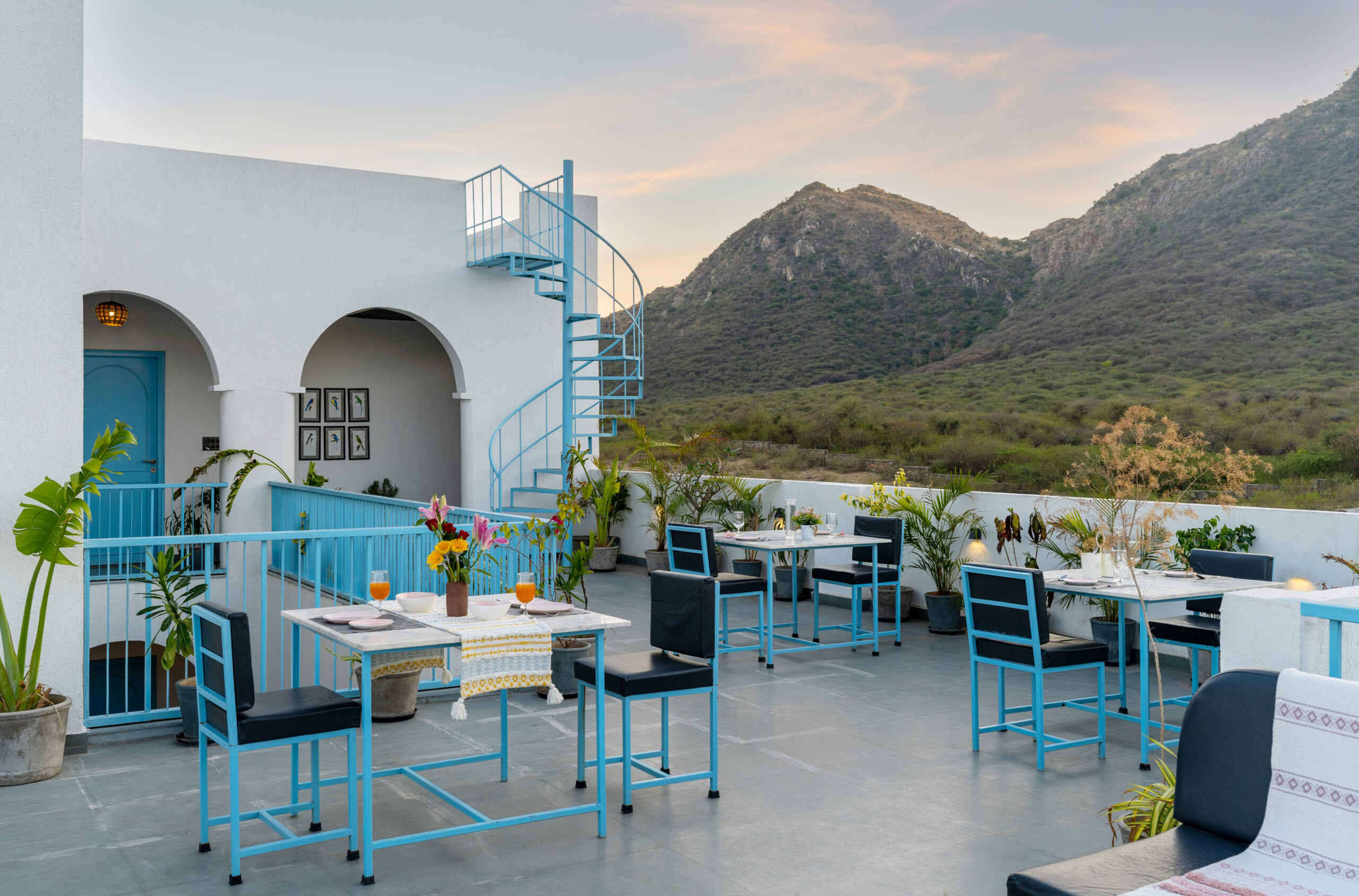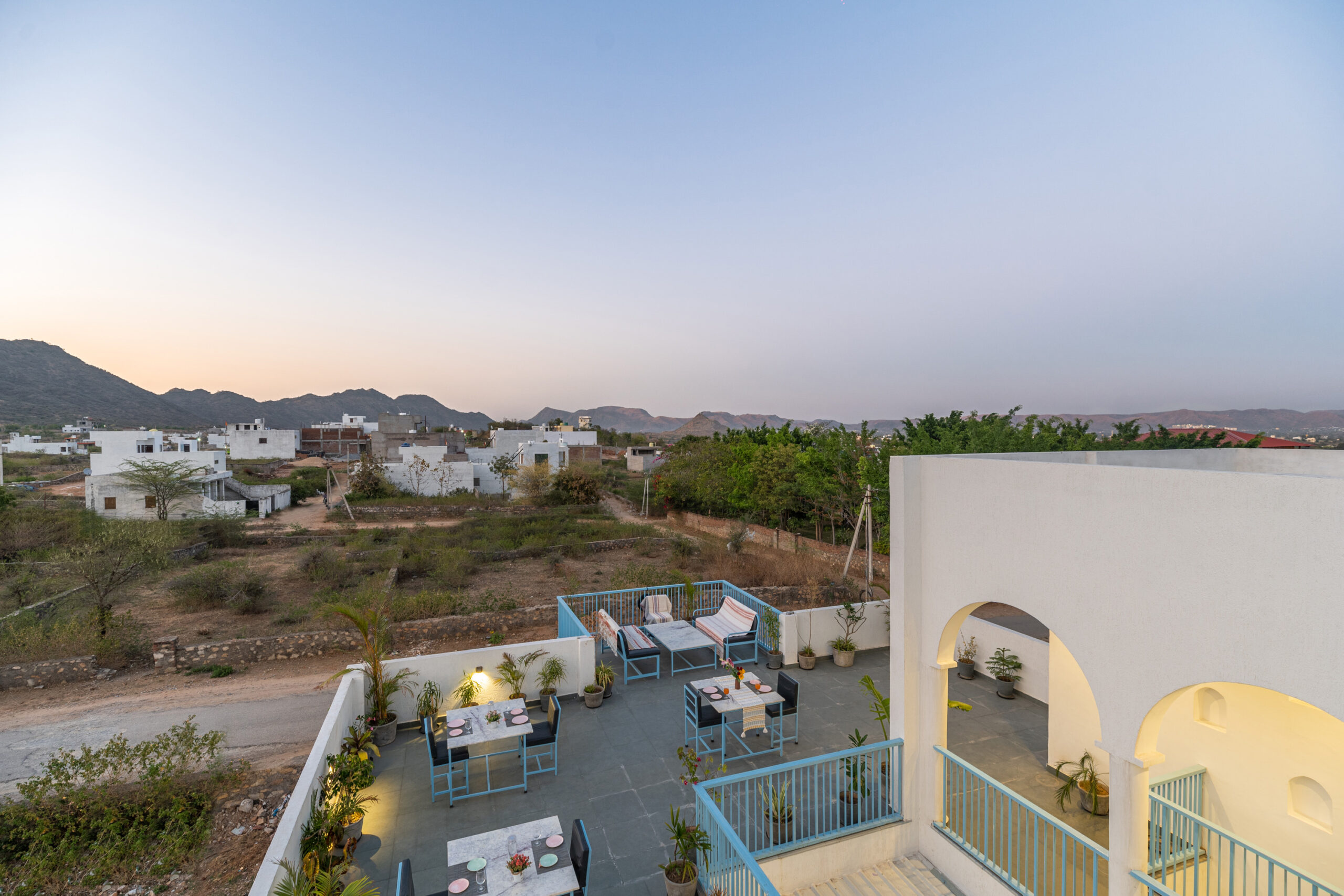 Greek Villa Udaipurs most exclusive getaway surrounded by Aravali range. A unique accommodation experience with bespoke luxury, sumptuous food & hospitality. A beautiful & luxurious Greek architectured villa amid the Aravalli hills, just a few kilometres away from the famous Lake Fatehsagar.