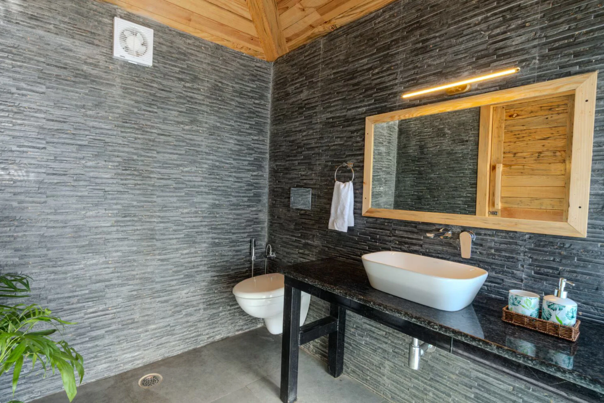 Convenient facilities such as full-day security, in-room breakfast service, and complimentary on-site private parking are also provided. Additional features include a barbecue area and film nights. This hidden treasure harmoniously combines adventure, relaxation, and nature in the picturesque region of Uttarakhand. The chalet features a king-size double bed, two full-size bunk beds, a sofa with a center table, an in-room fireplace, and a balcony, along with an attached bathroom equipped with hot and cold water.